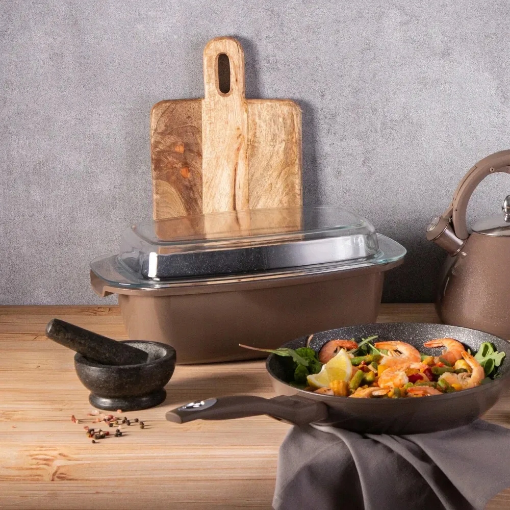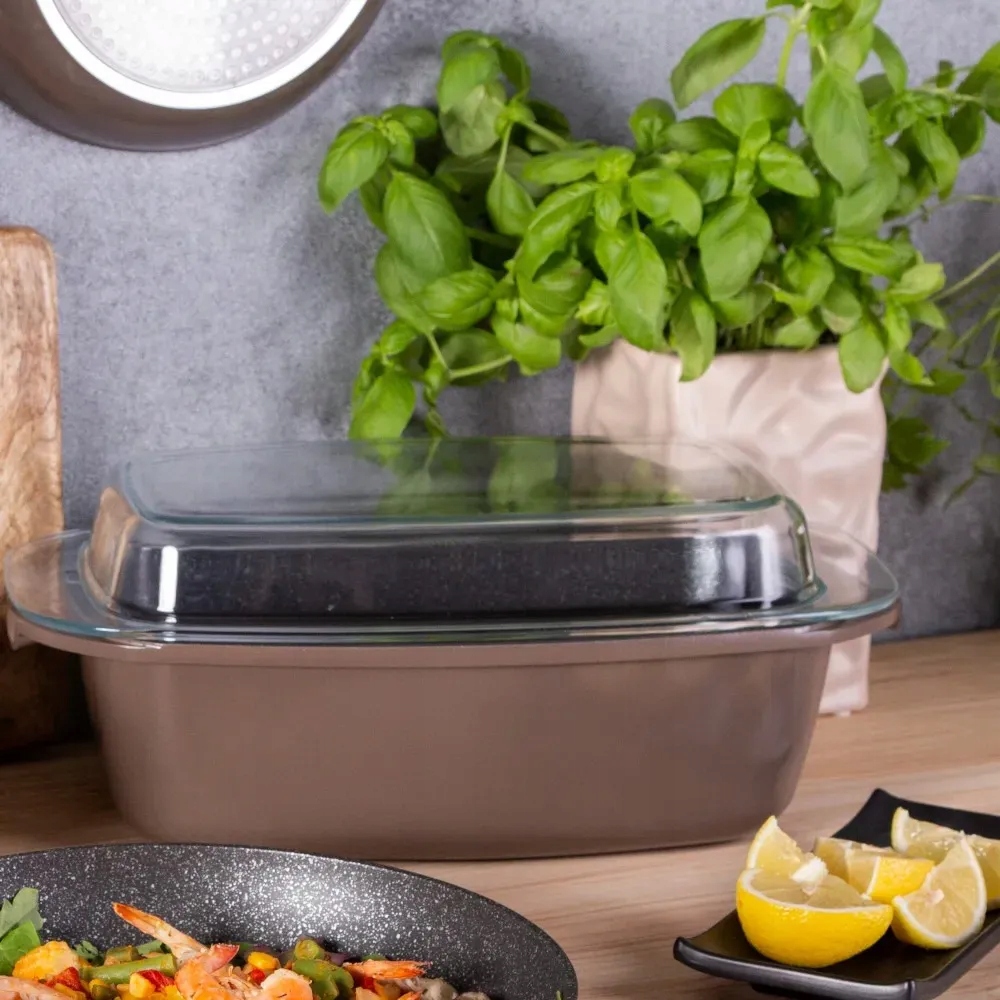 Brytfanna Valdinox Fiord to wyjątkowe naczynie stworzone z myślą o domowych kucharzach, którzy cenią funkcjonalność i jakość. Wyposażona w trwałą powłokę PFLUON zapewnia wygodne, zdrowe gotowanie bez ryzyka przywierania potraw. Ogromną zaletą zestawu jest możliwość użytkowania pokrywy jako oddzielnego naczynia do zapiekania, co czyni komplet niezwykle praktycznym. Brytfanna nadaje się do piekarnika oraz na każdy typ kuchenki, w tym indukcję, dzięki czemu sprawdzi się w każdej kuchni. To niezawodne, eleganckie i wielofunkcyjne naczynie, które szybko stanie się Twoim ulubionym pomocnikiem w przygotowywaniu codziennych i wyjątkowych potraw.
