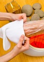 Parafina zastosowana w zestawie działa jak kojący kompres, który otula stopy odżywczym ciepłem.