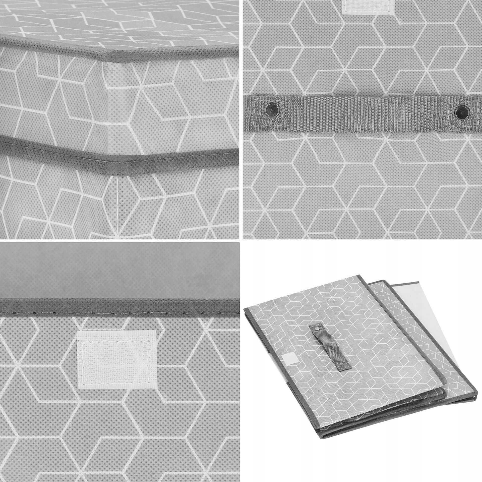 Pudełko ma charakter składany, a więc łatwo je przechowywać nawet, gdy obecnie się z niego nie korzysta. Element wzmacniający dno zwiększa ładowność organizera. Proces składania i rozkładania jest bardzo prosty i poradzi sobie z nim nawet dziecko.