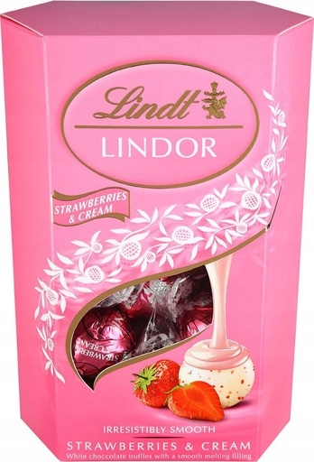 Торговое название Lindt Lindor Biała czekolada i trufle truskawkowe z nadzieniem śmietankowym 200 g