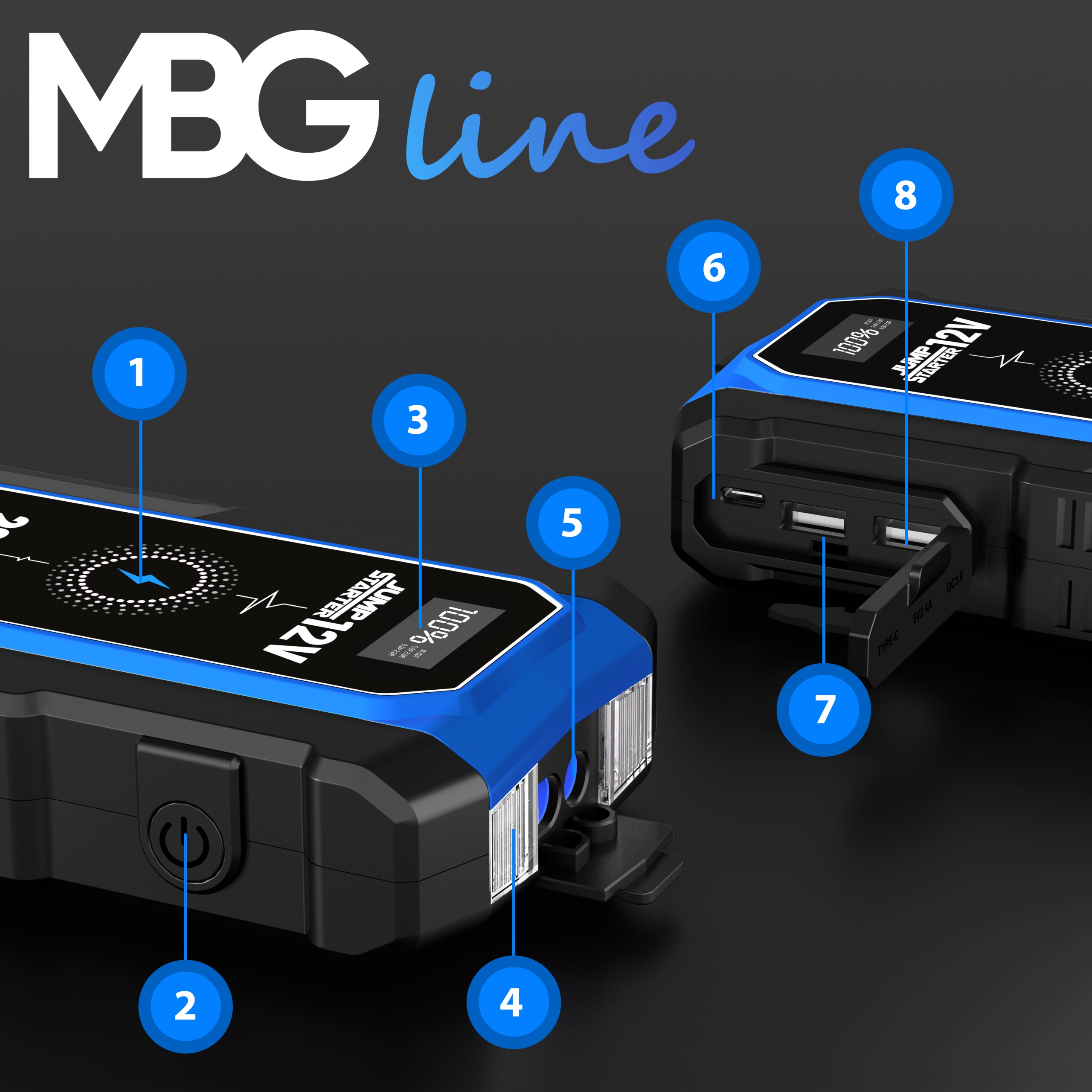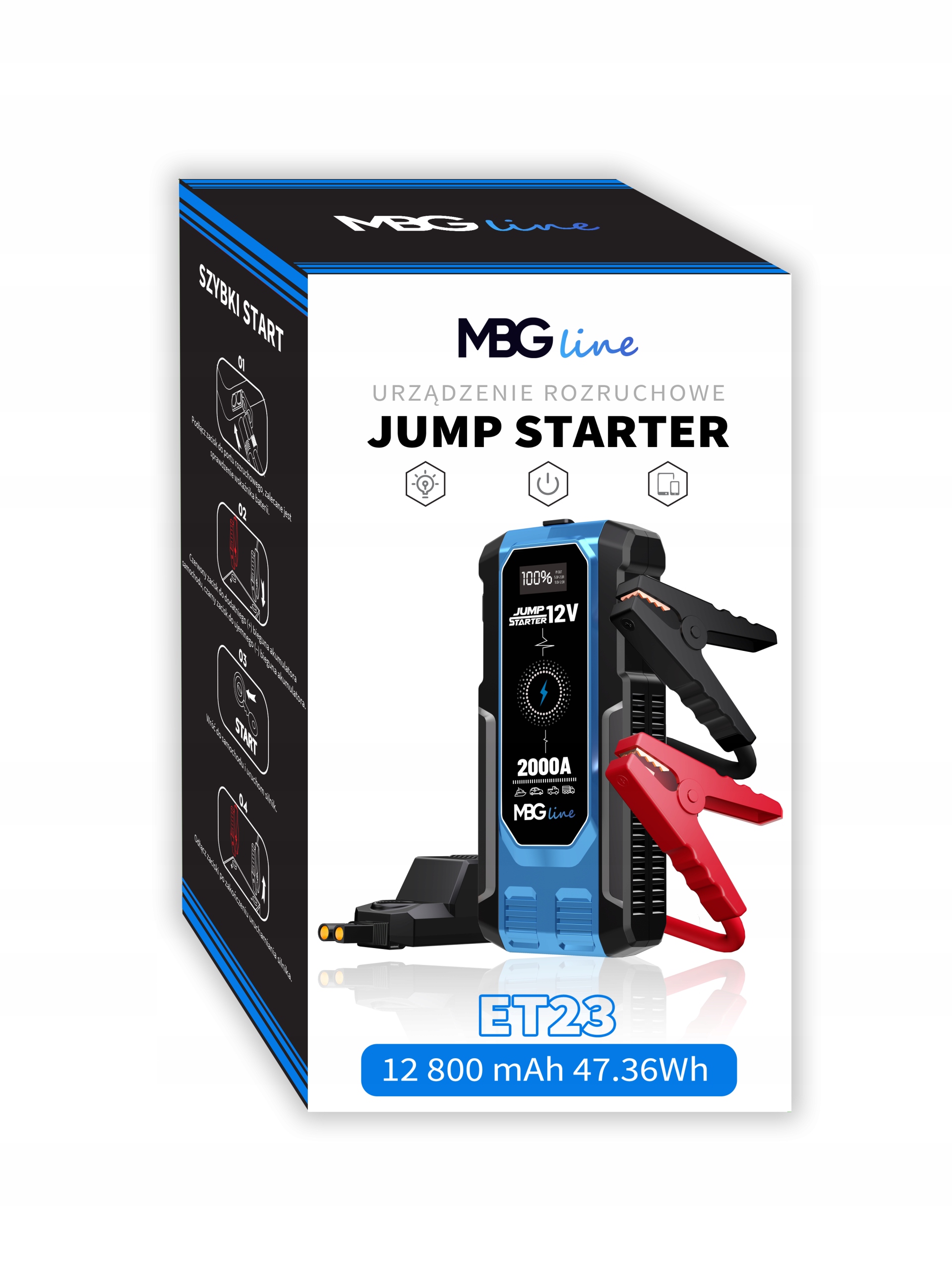 Jump Starter ET23 marki MBG line to niezawodne źródło energii, które sprosta Twoim potrzebom w każdej sytuacji. Dzięki swoim imponującym parametrom i wielofunkcyjności, stanowi nieocenione narzędzie do zasilania i awaryjnego rozruchu pojazdów oraz ładowania wielu urządzeń elektronicznych. Niezależnie od tego, czy jesteś na wyprawie, w podróży służbowej czy w nagłej sytuacji, Jump Starter ET23 jest gotów do działania.