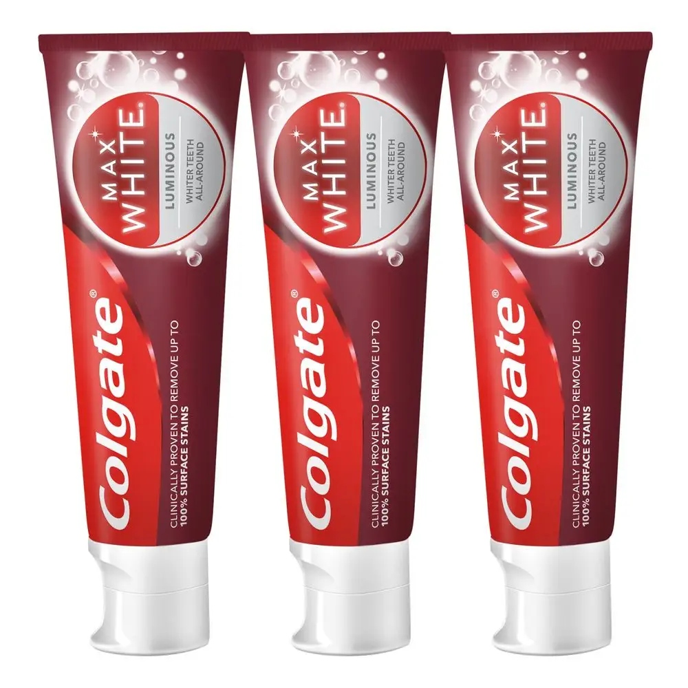 Colgate Max White Luminous pasta do zębów dla efektu śnieżnobiałych zębów 3 x 75 ml