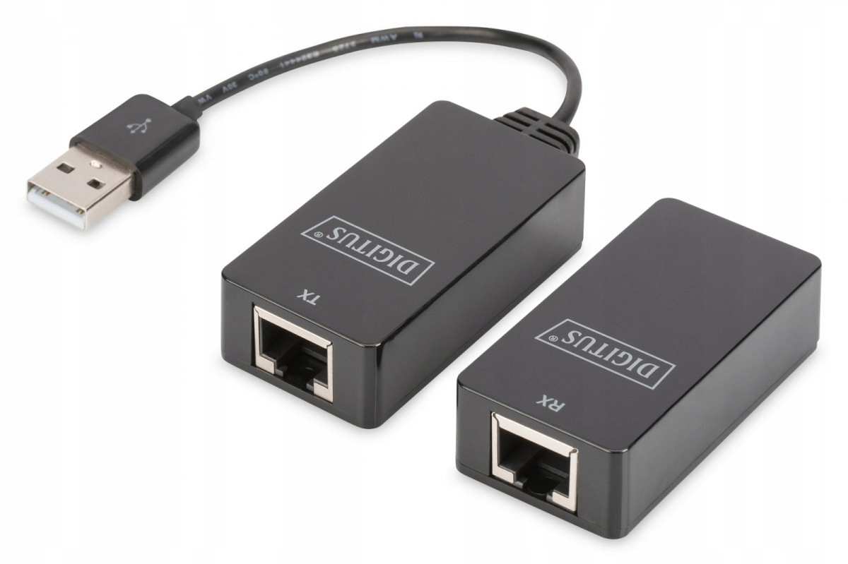 Przedłużacz USB DIGITUS DA-70139-2; Oszczędne uniknięcie ograniczeń długości USB a pozwalające na umieszczenie urządzeń USB stosownie do życzenia; Przejściówka przedłużeniowa USB pozwala na podłączenie urządzenia USB do komputera w odległości do 45 m za pomocą kabla krosowego kat. 5, 5e lub kat. 6 (nie jest dołączony). Ta przejściówka pozwala na ustawienie kamer USB, drukarek, kamer internetowych, skanerów lub innych urządzeń USB dokładnie w żądanym miejscu bez konieczności przestawiania ich wokół komputera.