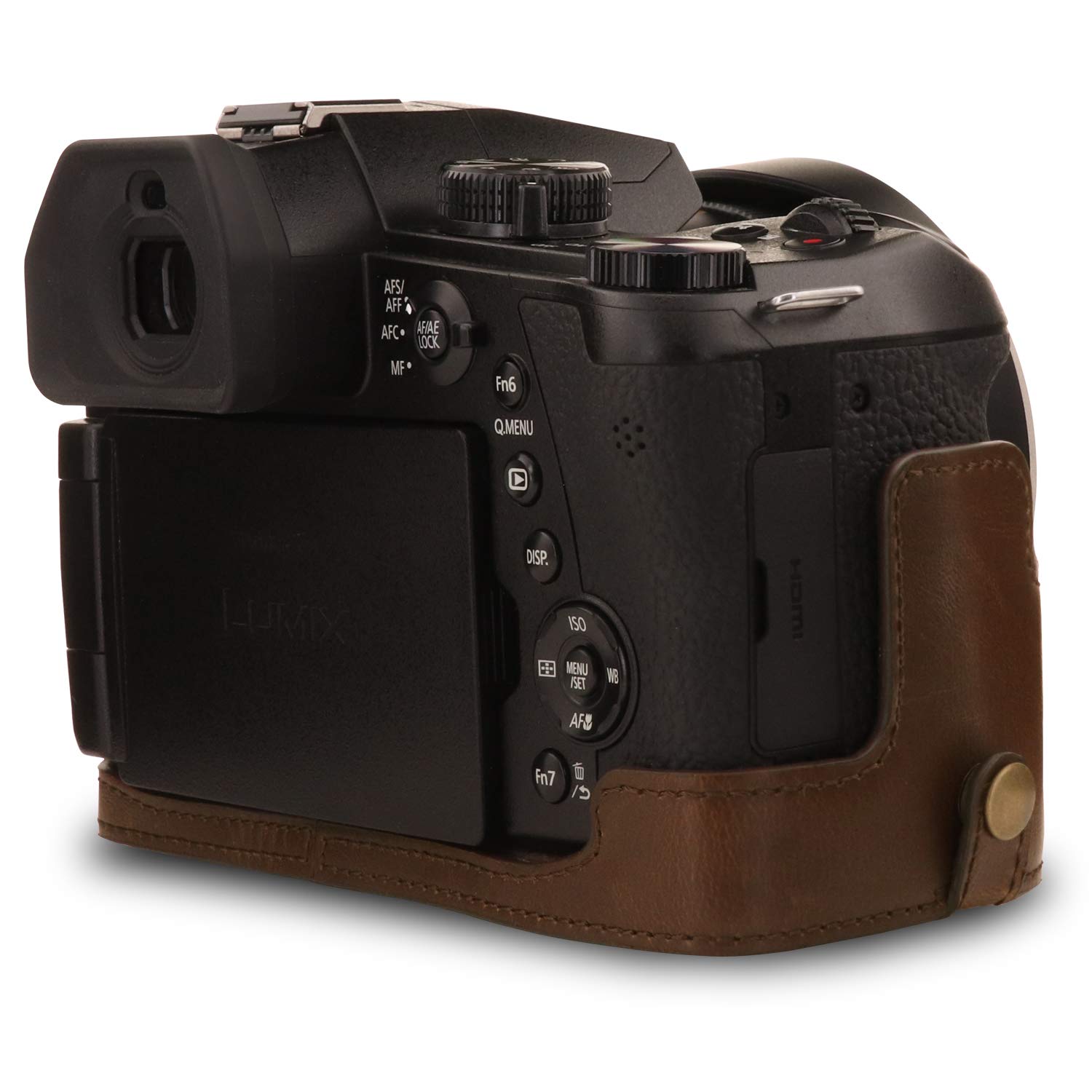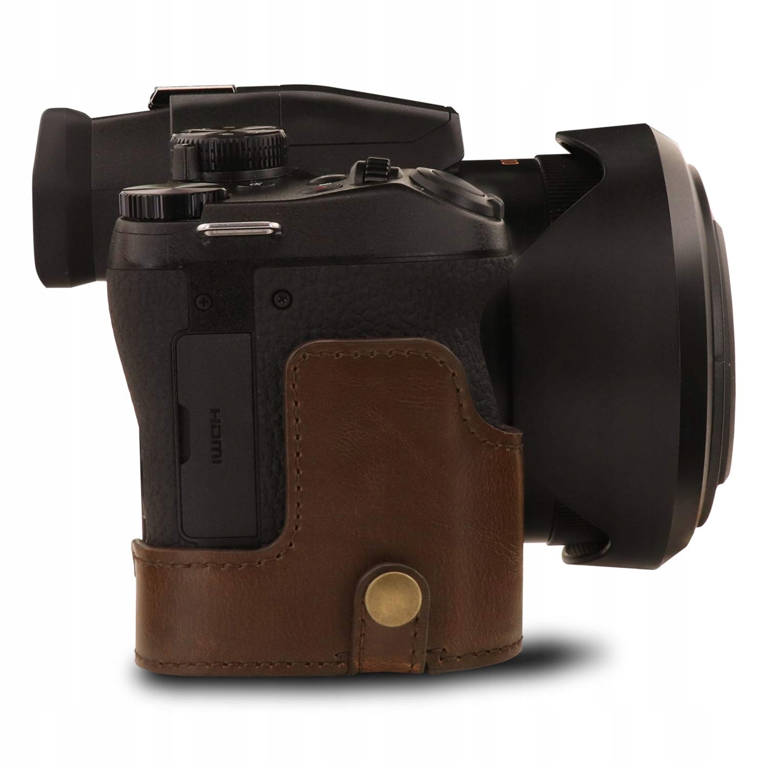 MegaGear MG1679 Ever Ready to wysokiej jakości skórzane etui ochronne przeznaczone do aparatów Leica V-Lux 5 oraz Panasonic Lumix DC-FZ1000 II. Etui wykonano z wytrzymałej skóry w eleganckim, ciemnobrązowym kolorze, co zapewnia zarówno stylowy wygląd, jak i trwałą ochronę Twojego sprzętu fotograficznego.