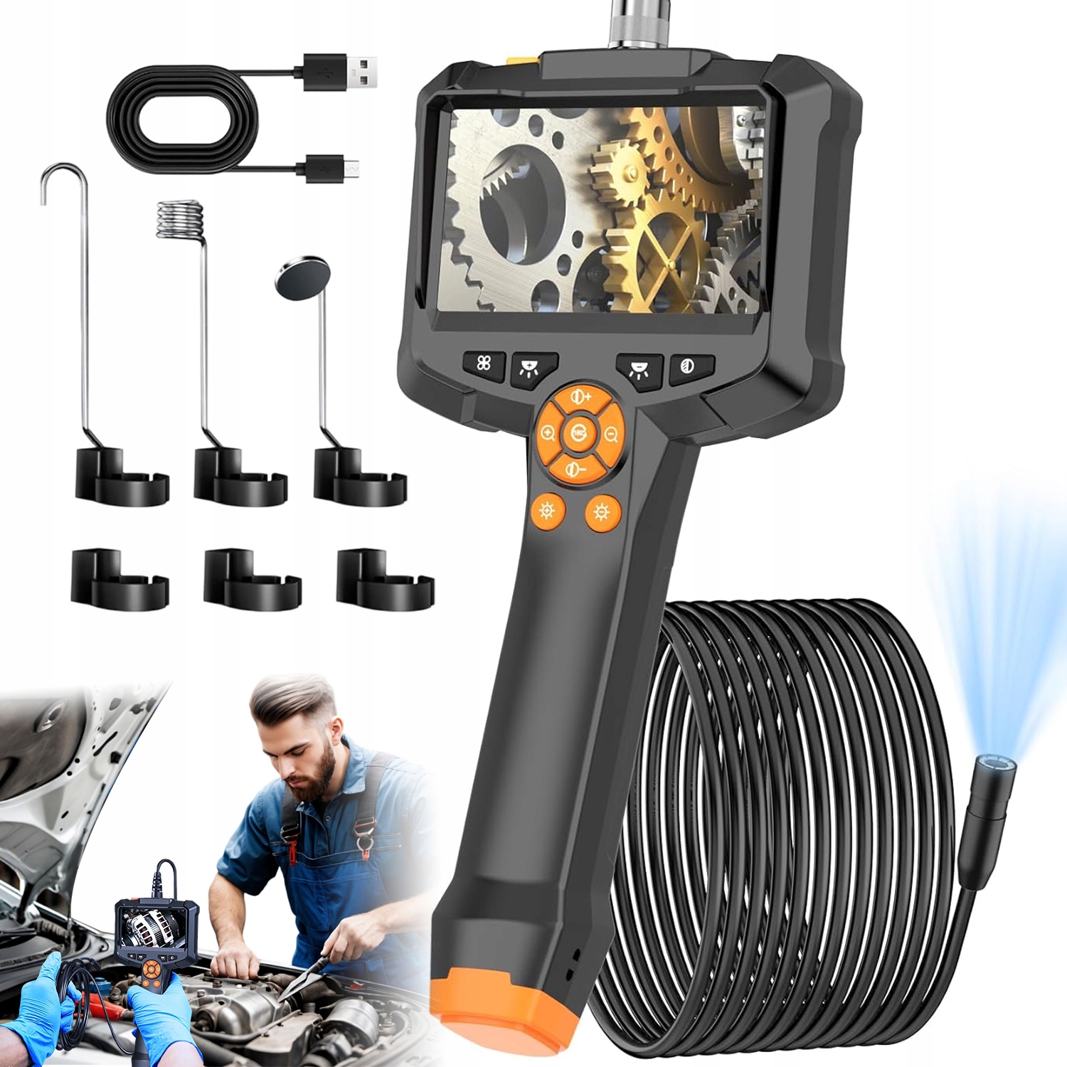 ✅4,3-calowy ekran IPS: Ciesz się niezwykle ostrym obrazem dzięki kamerze endoskopowej z oświetleniem. Rozdzielczość HD 1920 x 1080P zapewnia wyraźny obraz na 4,3-calowym kolorowym ekranie. Matowa, antypoślizgowa obudowa i odłączany kabel zapewniają mobilność i bezpieczeństwo.