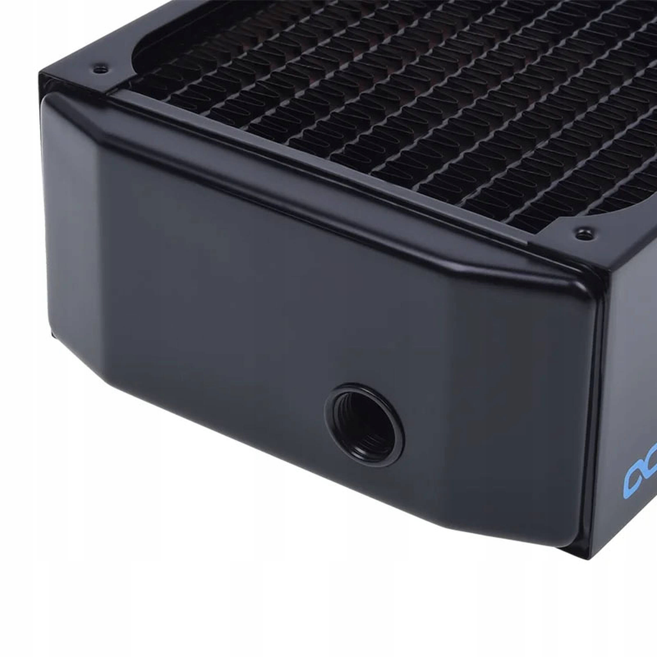 Model ten jest przystosowany do montażu trzech wentylatorów o rozmiarze 120 mm. Niezwykłą wszechstronność przy budowie układu zapewnia aż sześć standardowych portów przyłączeniowych G1/4 cala, co ułatwia planowanie i prowadzenie węży. Montaż zarówno wentylatorów, jak i samej chłodnicy, odbywa się przy użyciu standardowych gwintów M3.