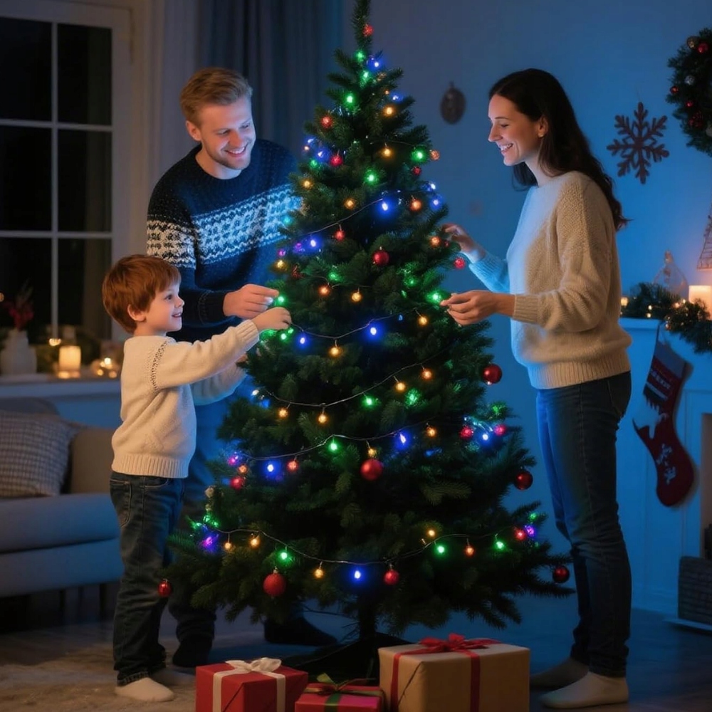 Światło w wielu barwach tworzy radosny, żywy nastrój, który natychmiast wprowadza magię świąt. Migoczące kolory czerwieni, zieleni, niebieskiego i żółtego ożywiają każde wnętrze, dodając mu ciepła i bajkowego uroku.
