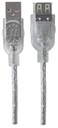 Przedłużacz USB 2.0 koloru srebrnego, jednej strony zakończony wtykiem USB A (złącze męskie), a drugiej gniazdem USB A (złącze żeńskie). Wykonany w standardzie Hi-Speed, który zapewnia ultra szybki transfer danych bez straty prędkości.