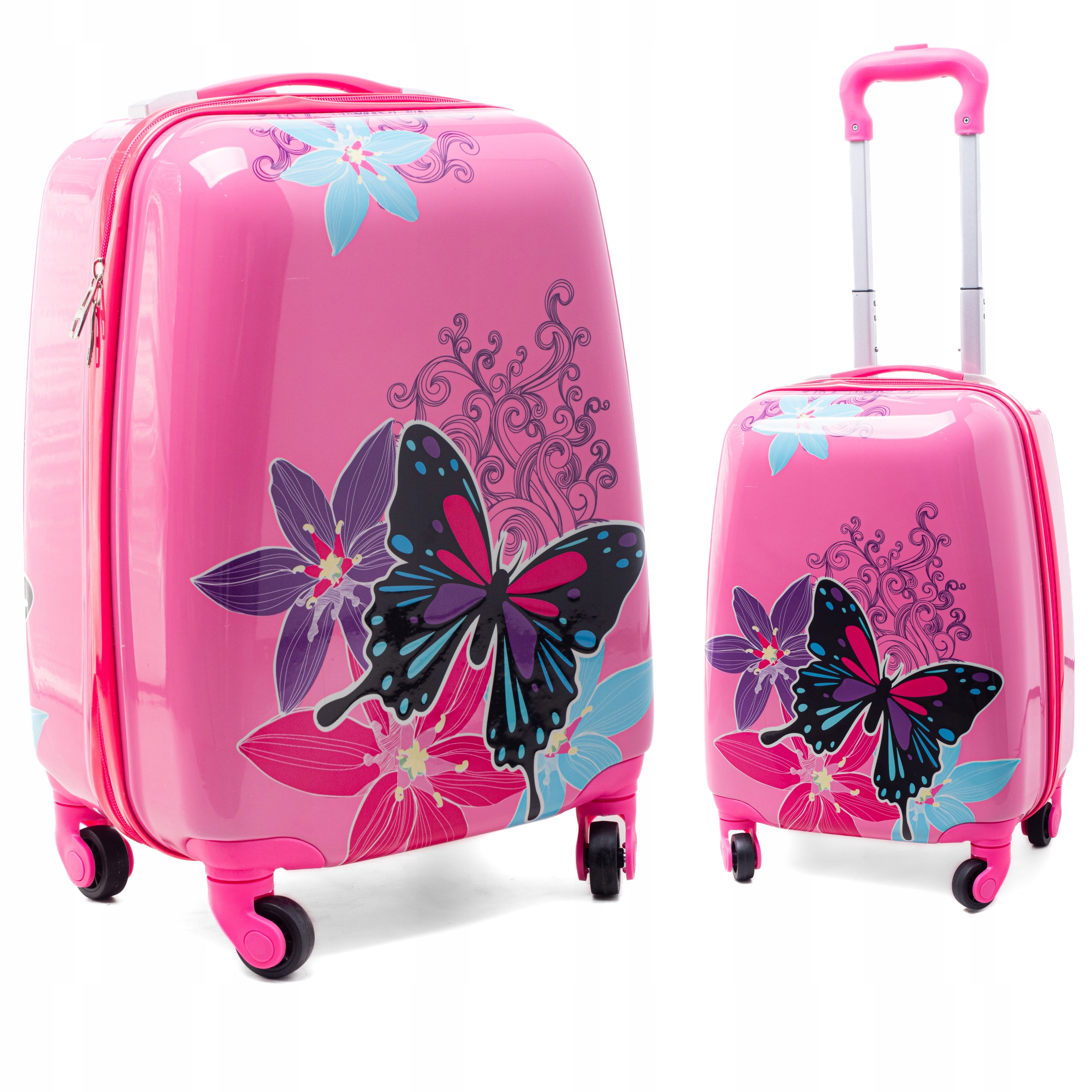 Dziecko może swobodnie prowadzić walizkę, dzięki czterem trwałym, kauczukowym, bezszelestnym kółeczkom.