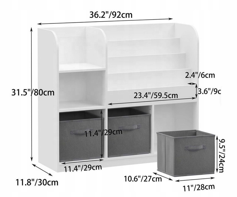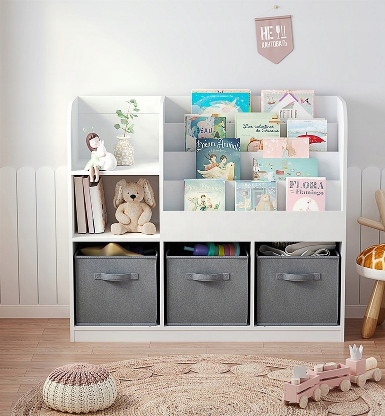 Wykonany z wysokiej jakości płyty MDF, bez problemu utrzymuje ciężkie książki i zabawki. Wielowarstwowe półki zapewniają dużą pojemność.