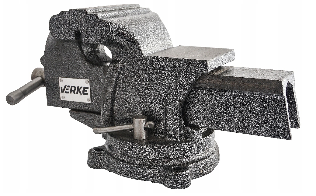 Profesjonalne imadło marki VERKE. Przeznaczone dla wymagających warsztatów ślusarskich, serwisów ogólno-mechanicznych i motoryzacyjnych, precyzyjnie wykonane z najlepszych materiałów, nadzwyczaj uniwersalne dzięki możliwości obrotu. Korpus imadła wykonany z żeliwa szarego, wymienne szczęki 200 mm i kowadełko z utwardzanej stali. Imadło montowane na obrotnicy. Powierzchnia pokryta czarnym lakierem "młotkowym".