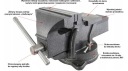 Podstawa obrotowa w zakresie 360°, pozwala na zmianę kąta położenia w płaszczyźnie poziomej. Imadło połączone z kowadłem tworzy solidną zwartą konstrukcje.