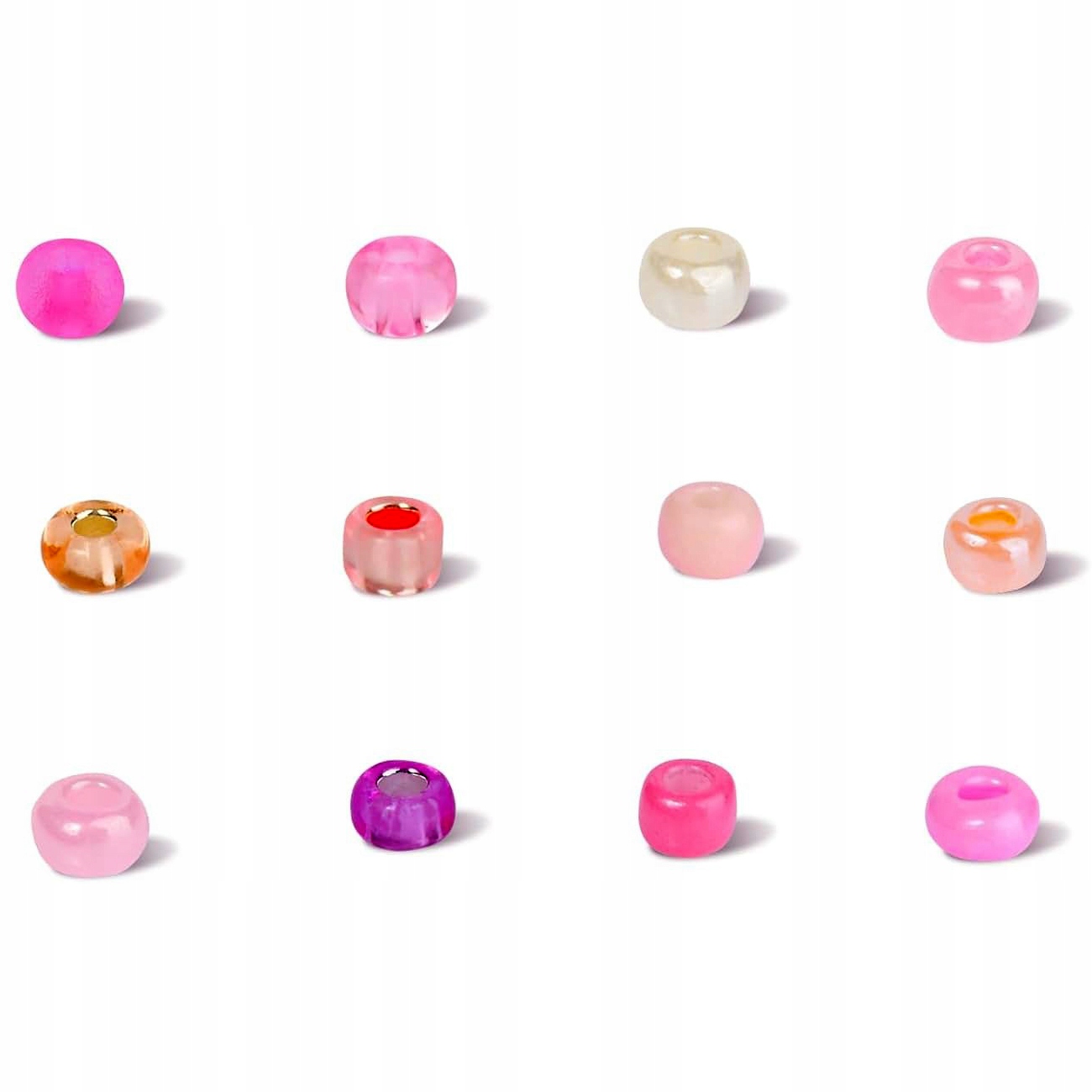 Zestaw zawiera aż 7380 małych, szklanych koralików w rozmiarze 3 mm, które idealnie sprawdzą się do tworzenia bransoletek, naszyjników oraz innych kreatywnych projektów DIY. Koraliki zostały podzielone na 12 kolorów, co daje ogromne możliwości dopasowania. Całość zapakowana jest w praktyczne pudełko z 12 przegródkami.