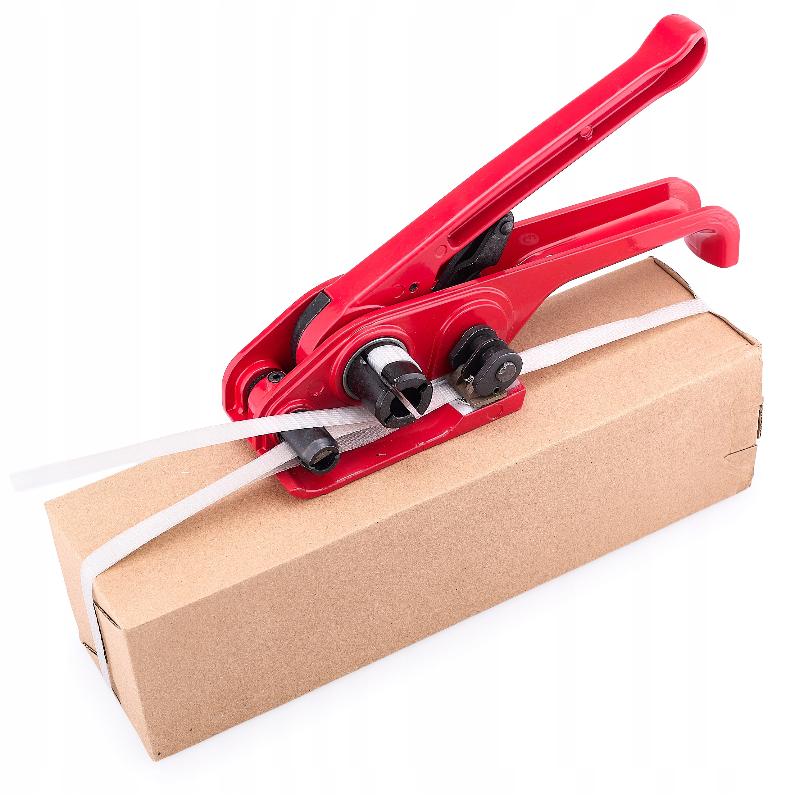 To połączenie dwóch niezawodnych narzędzi: ręcznej bandownicy (napinacza) i zaciskarki do zapinek blaszanych, idealne dla magazynów, sklepów wysyłkowych, firm kurierskich i produkcyjnych.