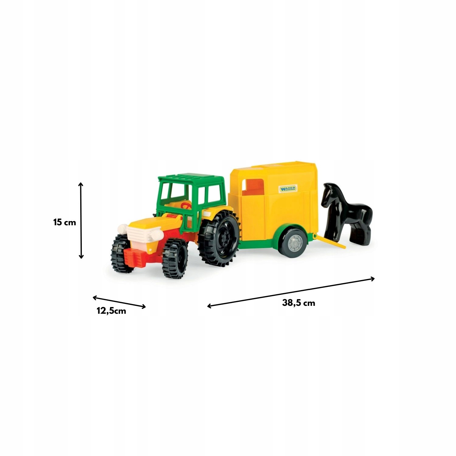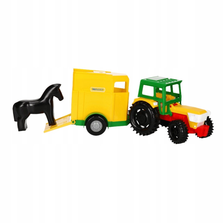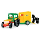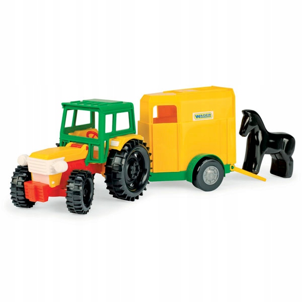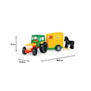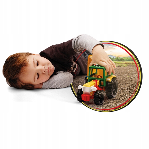 Pojazd charakteryzuje się realistycznym odwzorowaniem, solidnym wykonaniem, lekkością i wytrzymałością konstrukcji oraz łatwością sterowania. W zestawie znajduje się otwierana przyczepa z rozkładanym najazdem i figurka konia. Traktor posiada ruchome elementy uatrakcyjniające zabawę, takie jak podnoszona kabina i maska oraz skrętną przednią oś. Zabawa traktorem z przyczepą poszerzy informacje najmłodszych o otaczającym świecie, nasze pociechy dowiedzą się jak przebiega transport zwierząt oraz szybko przetransportują swoje figurki zwierząt po domu lub zabiorą je na wycieczkę do parku czy na podwórko. Zabawa pojazdami takimi jak Traktor z serii Color Cars pobudza kreatywność i wyobraźnię dziecka, poprawia jego umiejętności manualne i motoryczne, rozwija koordynację wzrokowo-ruchową oraz pogłębia jego wiedzę i zaspokaja potrzebę poznawania świata. Pojazd doskonale nadaje do zabawy w pojedynkę oraz w grupie, przez co wspiera integrację z rówieśnikami. Wszystkie elementy wykonane są z wysokiej jakości, trwałego i odpornego na działanie odmiennych warunków atmosferycznych tworzywa, dzięki czemu zabawka idealnie spełni swoje zadanie na plaży, w domu czy w piaskownicy.