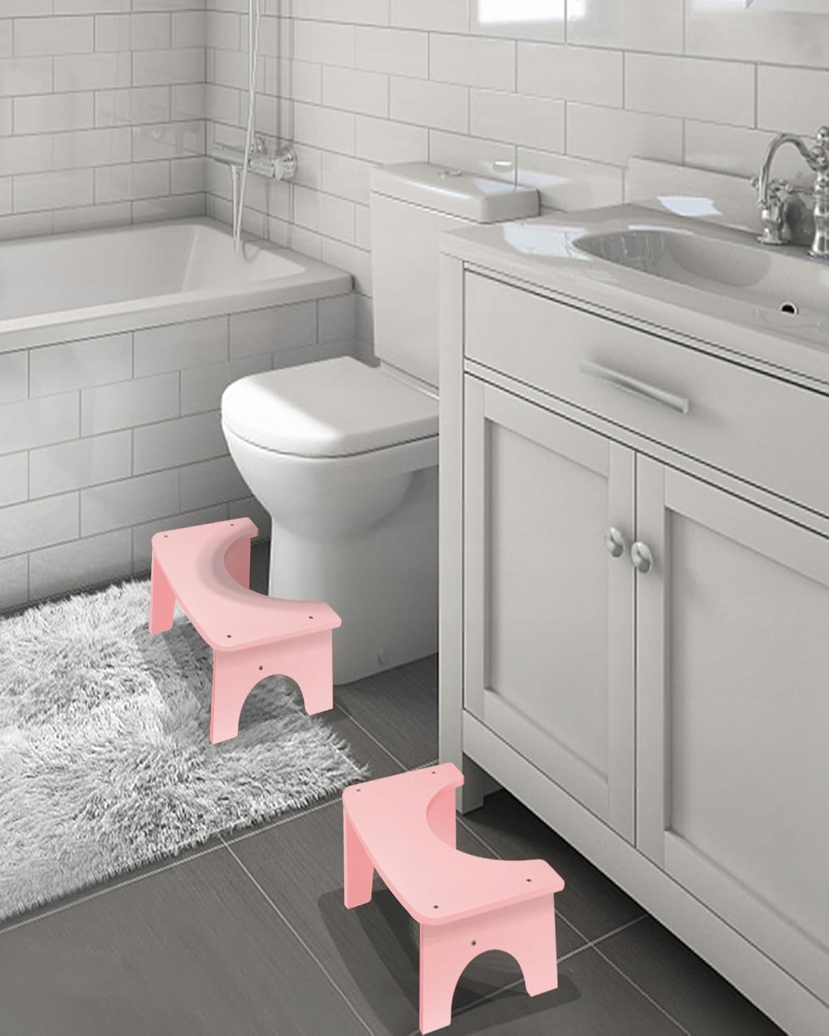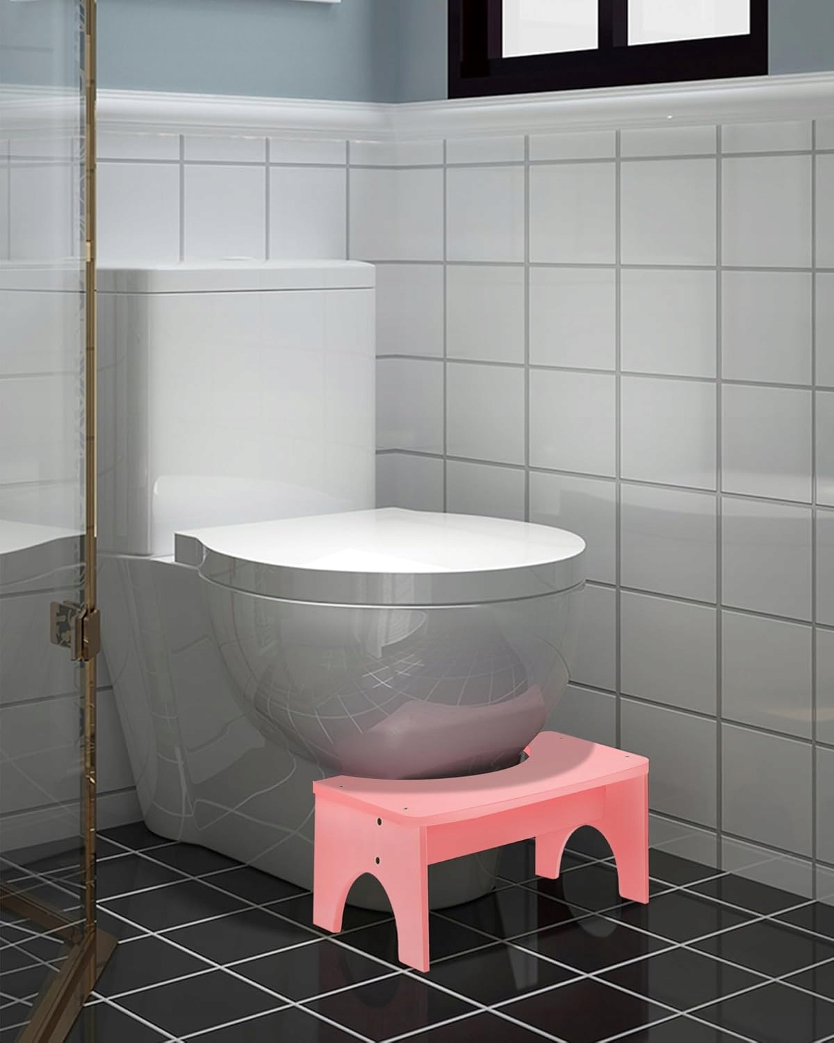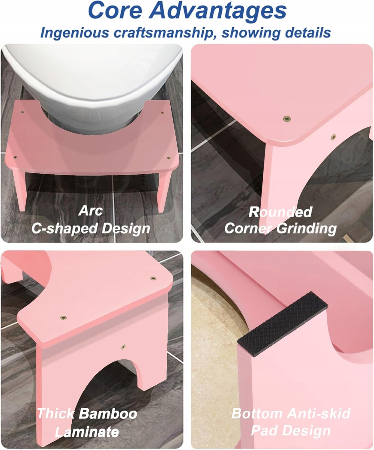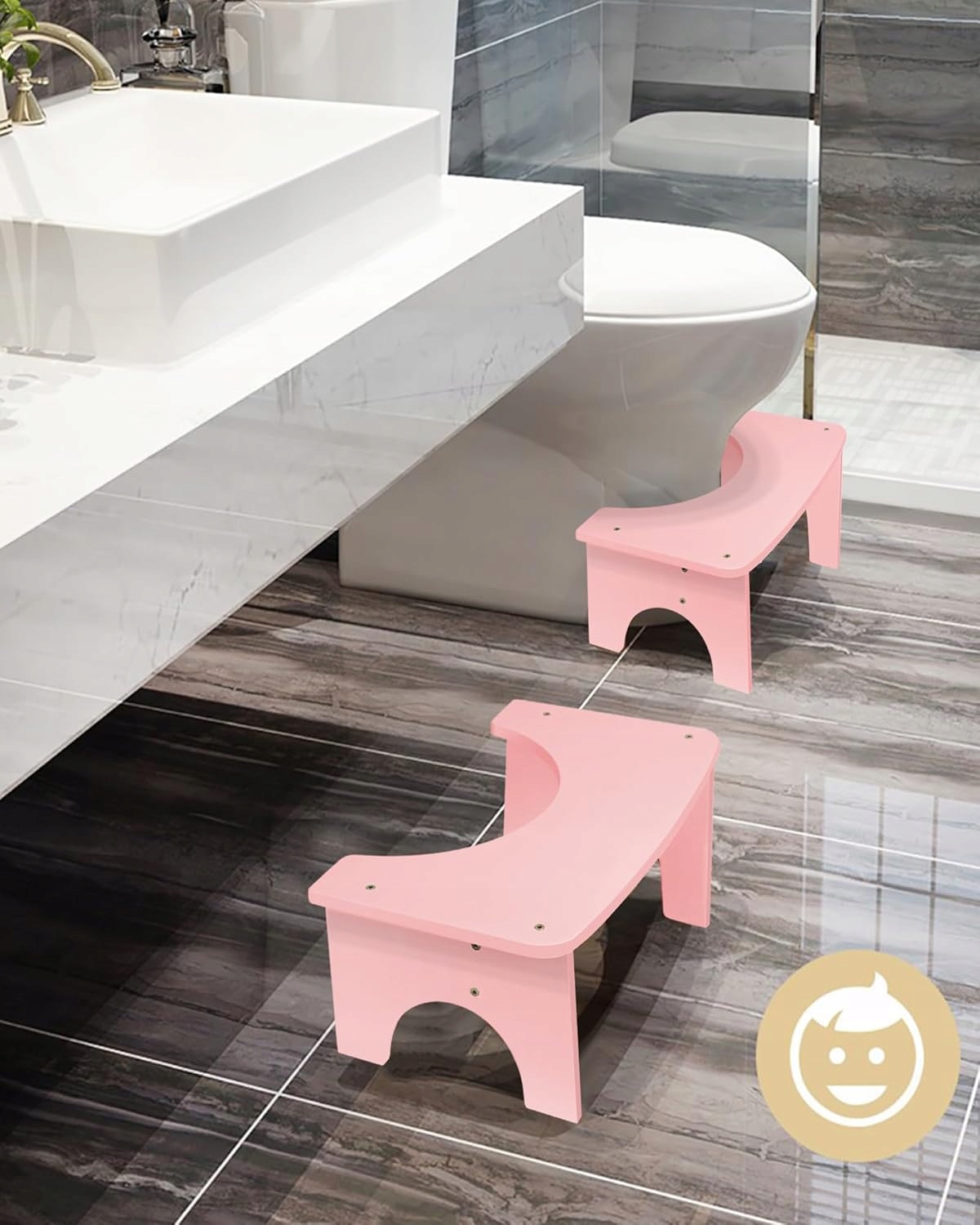 Stołek w kształcie litery C umożliwia przyjęcie naukowo zalecanej pozycji 35°, łagodząc zaparcia i wspierając zdrowy tryb życia.