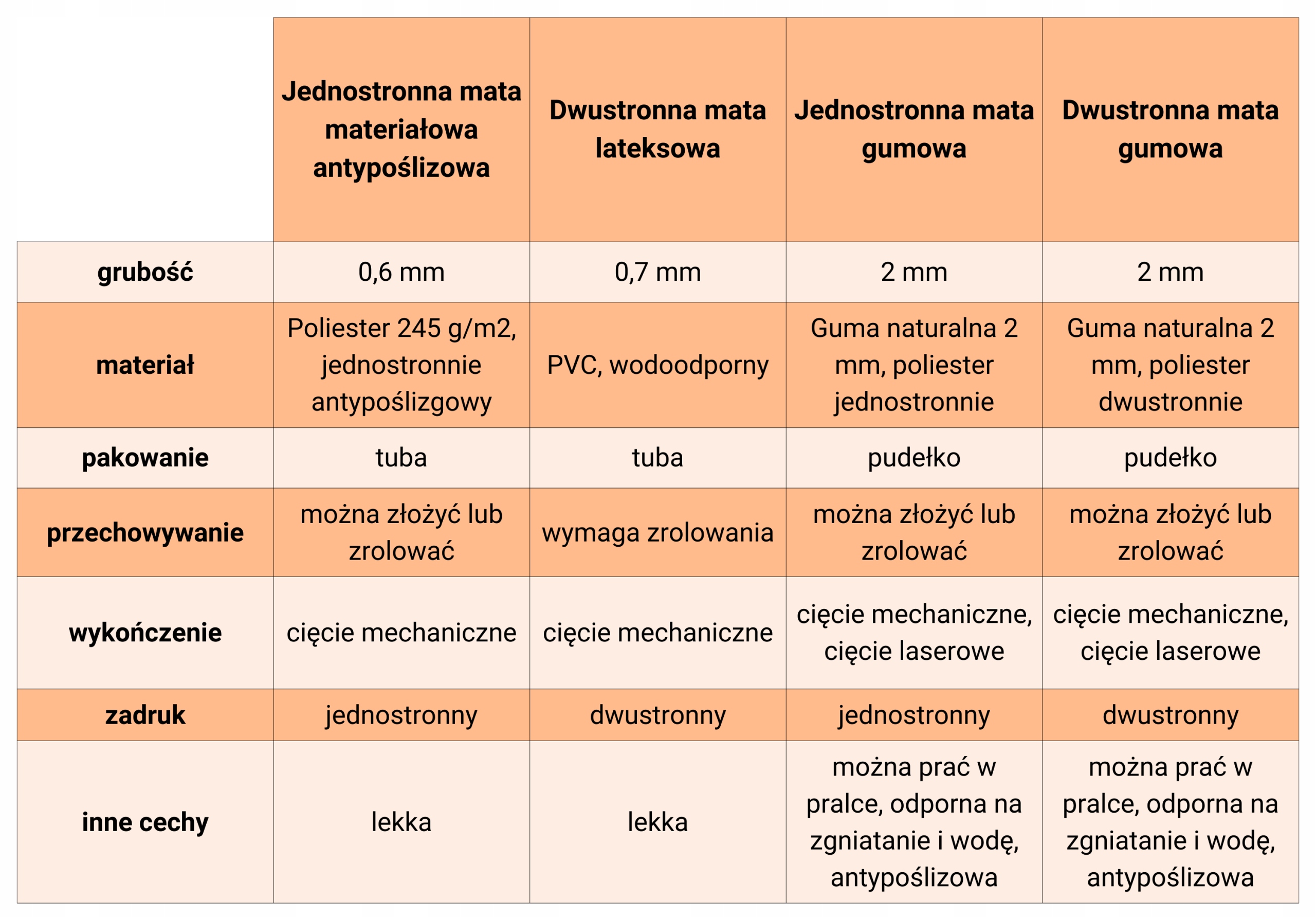 Z powodów technologicznych maty mogą odbiegać wymiarami od podanych w specyfikacji o kilka milimetrów.