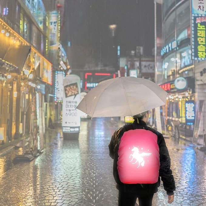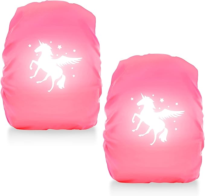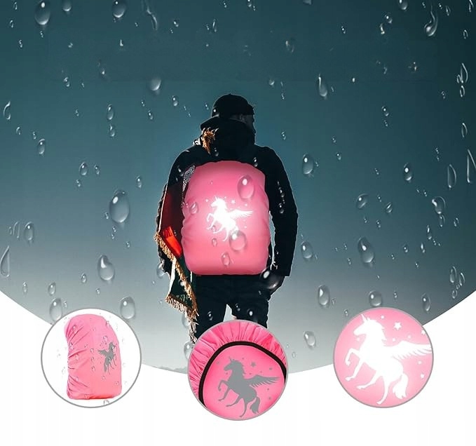 Każdy pokrowiec ozdobiony jest uroczym wzorem jednorożca, który pokochają dziewczynki. Dzięki materiałowi odblaskowemu Twoje dziecko będzie lepiej widoczne na drodze – nawet po zmroku lub przy złej pogodzie.
