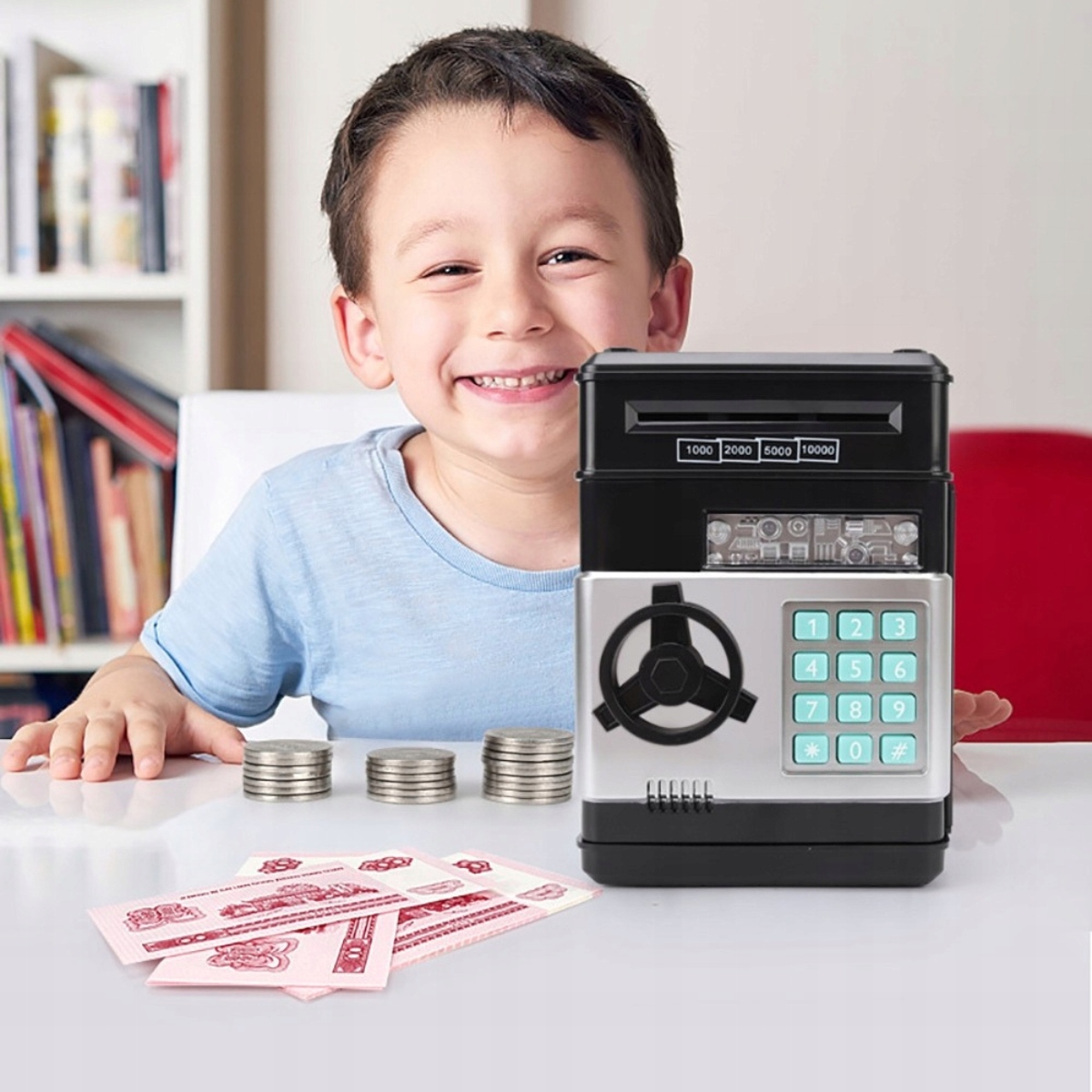 Это идеальный подарок, который позволяет детям понять значение денег, в то же время делая процесс сохранения веселым и захватывающим опытом. Представьте своего ребенка мир финансов привлекательно благодаря нашей копилке-сейфу!