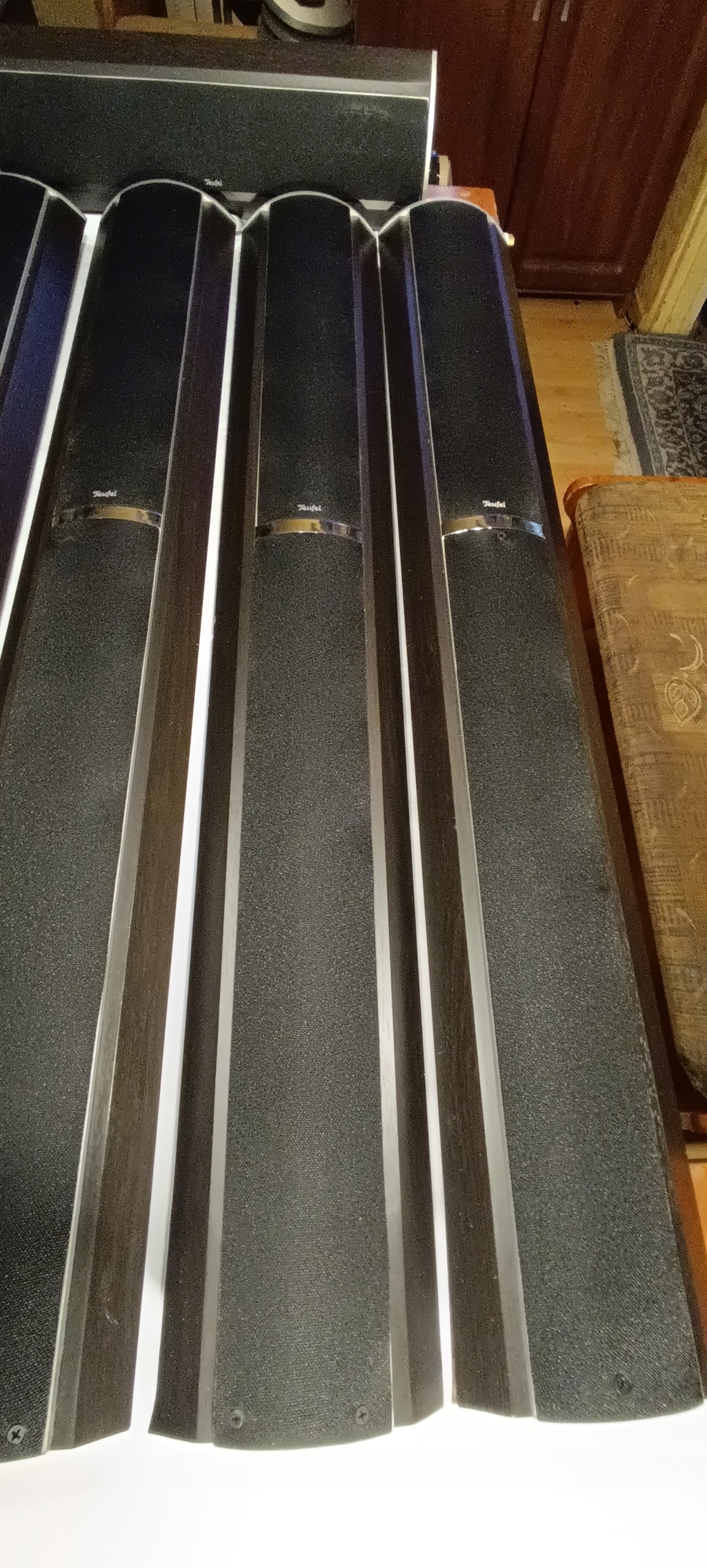 Firma ,,TEUFEL,, jest znaną i cenioną firmą produkującą sprzęt audio z wyższej półki cenowej, więc na pewno warto je odrestaurować, tym bardziej że wszystkie głośniki są sprawne i grają dobrze.
