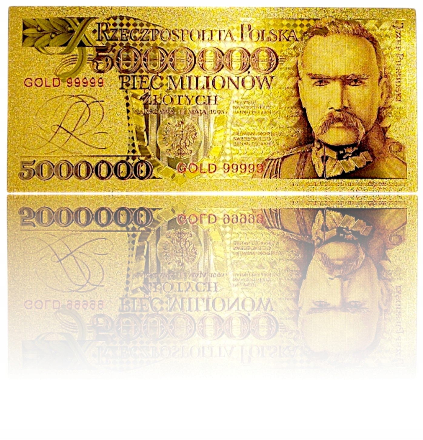 ⭐Na awersie widnieje portret Marszałka w mundurze oraz napis „Rzeczpospolita Polska” i imponujący nominał 5 000 000 złotych – symboliczny znak siły i potęgi narodu.