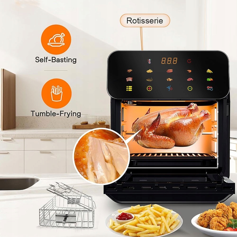 ✨ Pojemność dla całej rodziny (9,5L): Bez trudu przygotujesz obiad dla 4–6 osób, mieszcząc całego kurczaka lub duże porcje frytek za jednym razem.