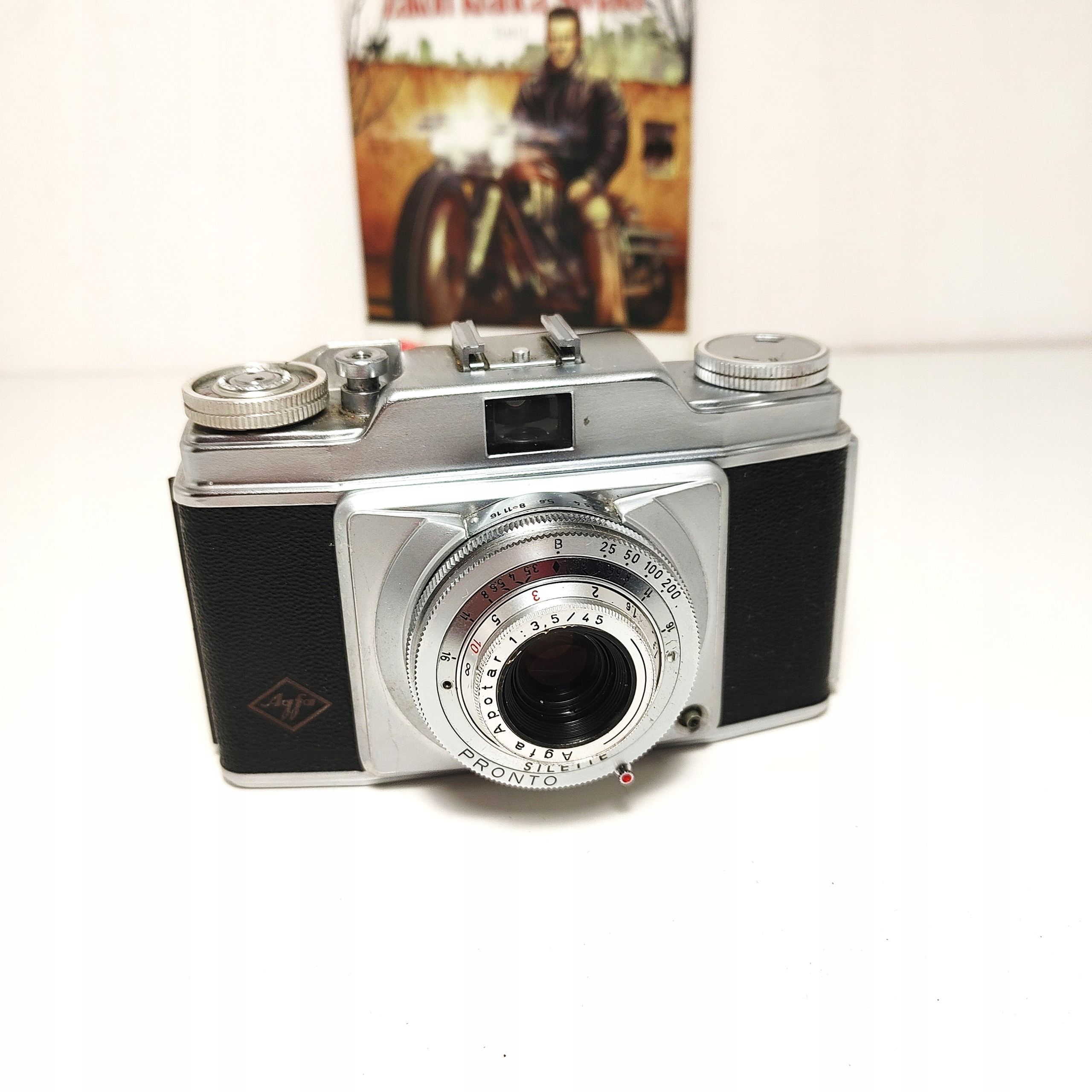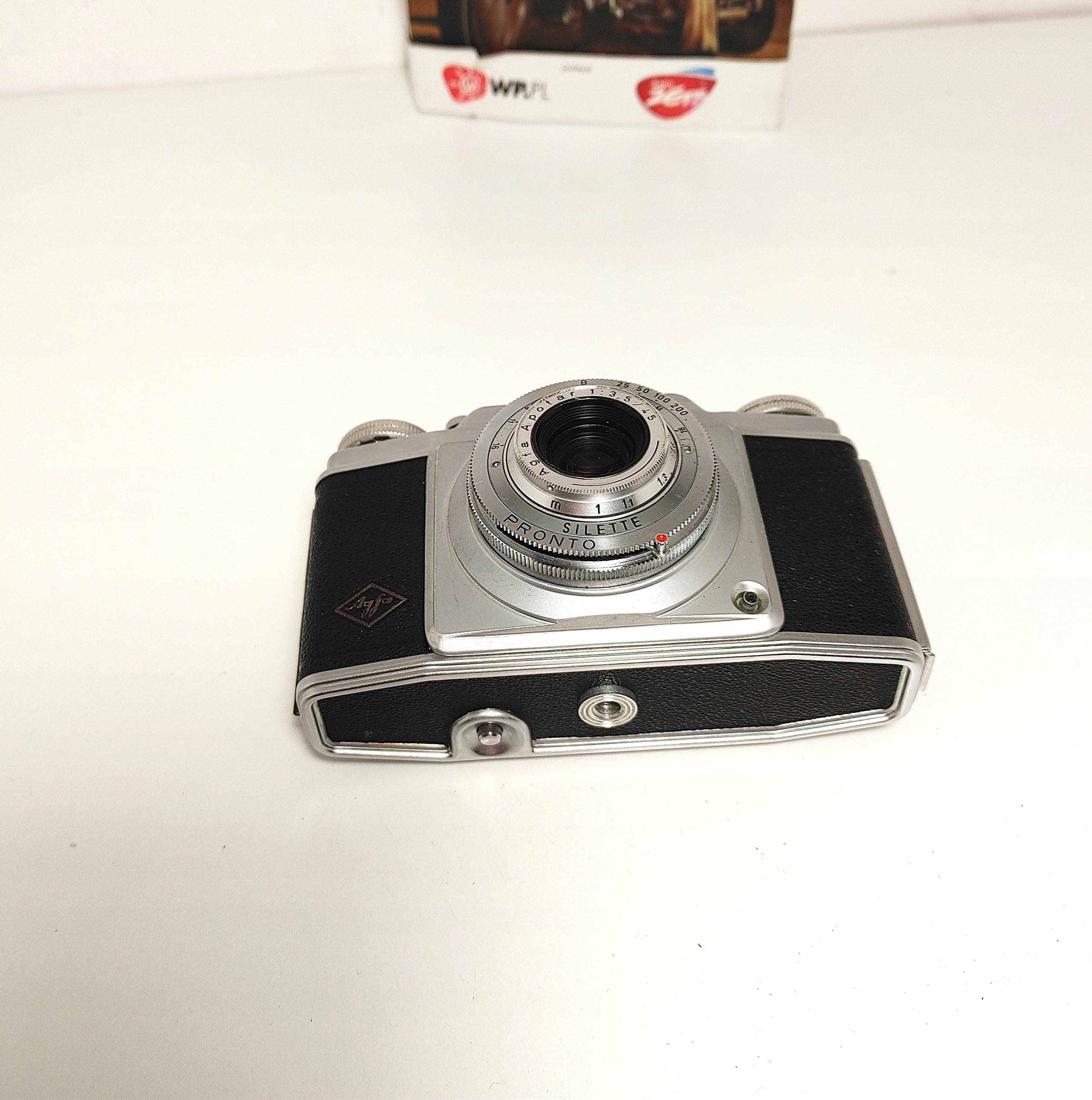 Ten egzemplarz ma zastosowaną migawkę Pronto z czasem do 200. Obiektyw Agfa Apotar 3,5/45 mm.