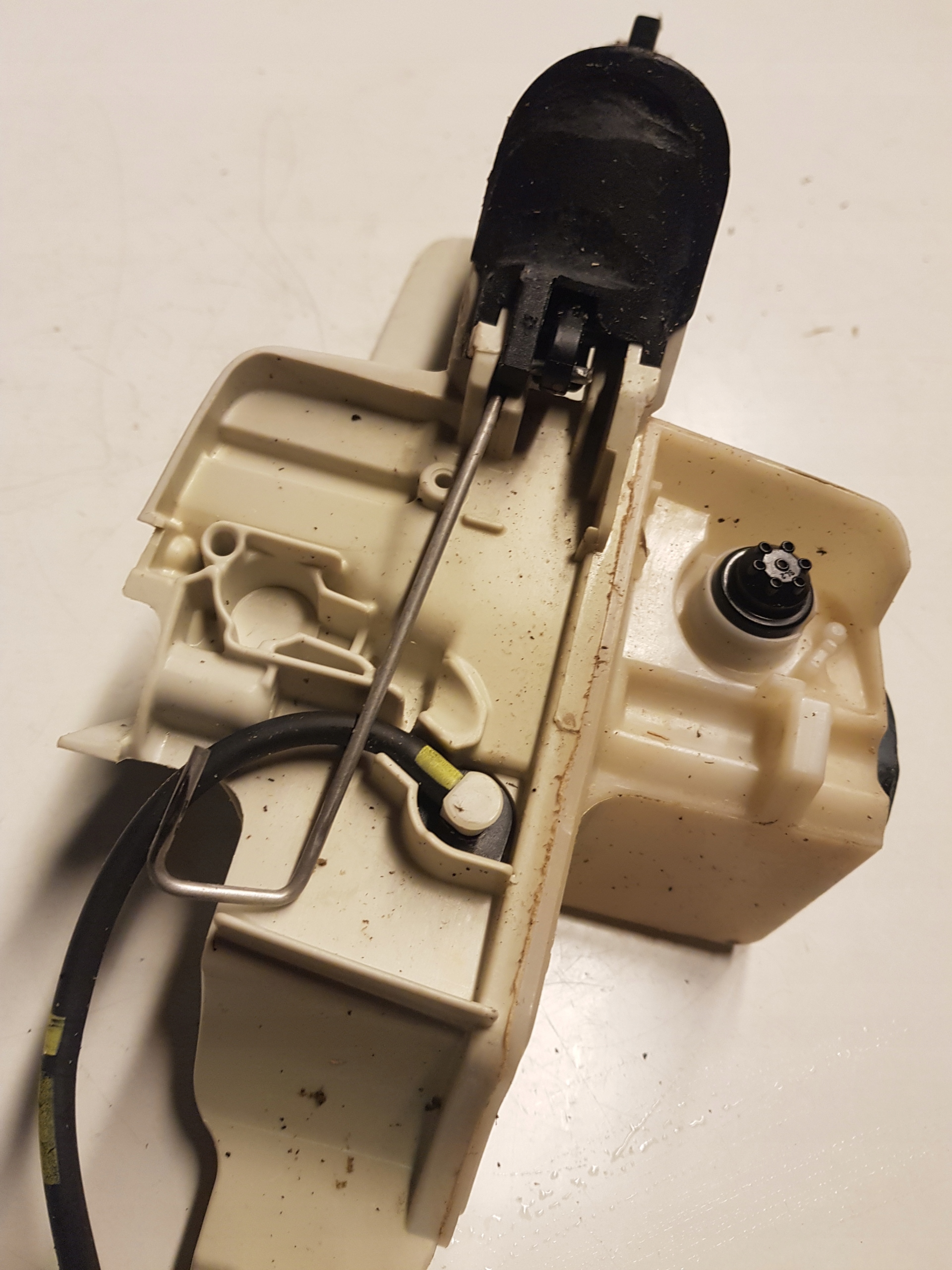 OFERTĄ SPRZEDAŻY JEST UŻYWANY ORYGINALNY ZBIORNIK PALIWA BAK RĄCZKA GAZU DO PILARKI SPALINOWEJ MARKI STIHL