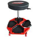 Obrotowy taboret warsztatowy z wkładami do przechowywania drobnych elementów.
