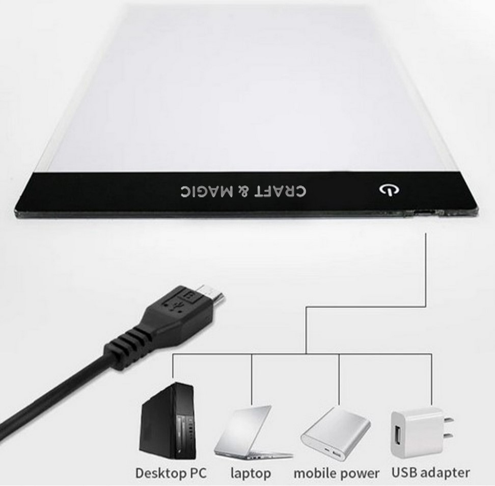 Tablet Graficzny LED A4 od Craft & Magic to nowoczesna, lekka i bardzo wygodna deska do rysowania, kopiowania i kreatywnej zabawy — do kompletu otrzymujesz klipsy, rękawiczka do tabletu oraz aż 2500 wyjątkowych szablonów, które natychmiast rozpalą kreatywność.