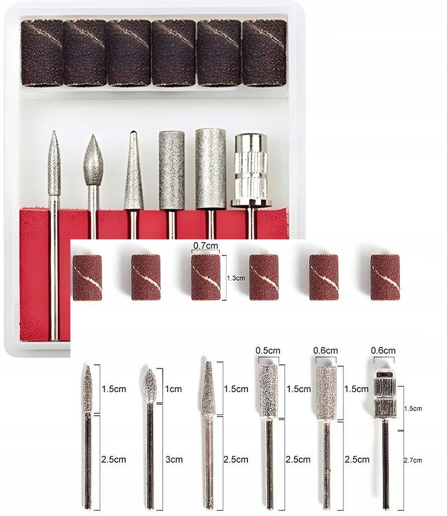 Frezy te o różnej wielkości i kształcie idealnie nadają się do matowienia naturalnej płytki paznokcia, tipsa, żelu czy akrylu, obrabiania wału paznokciowego oraz skórek przy paznokciach, piłowania, skracania paznokci, szlifowania i wygładzania skóry