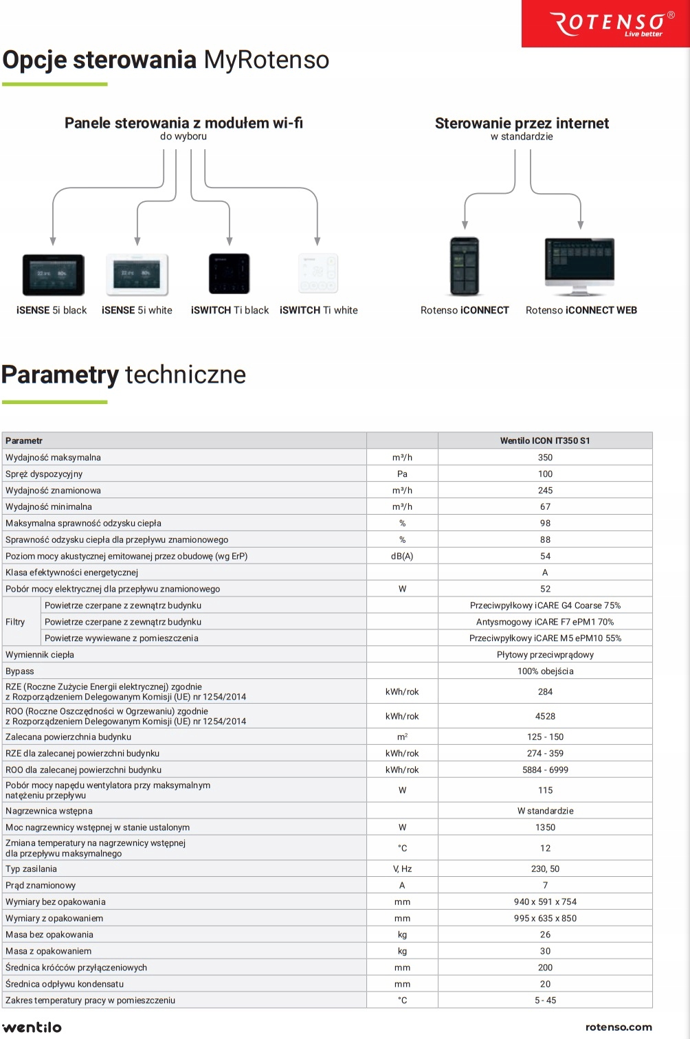 Rekuperator Wentilo Icon IT 350 S1 AA