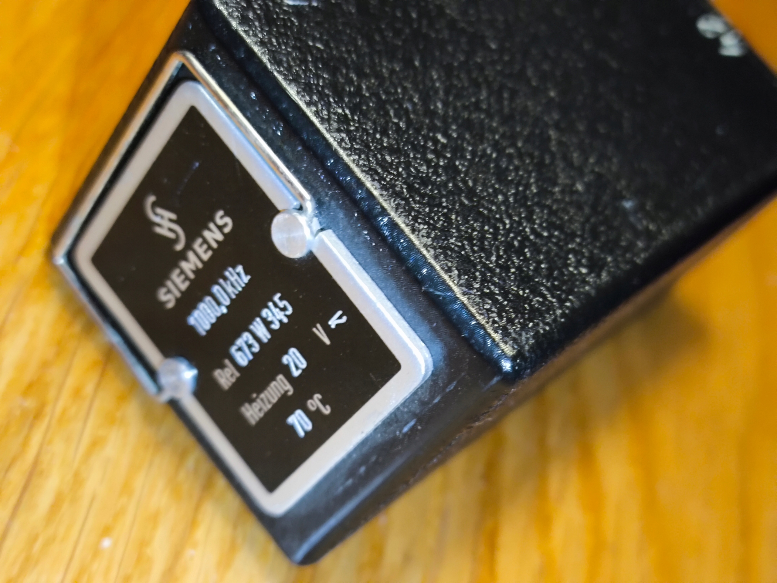 Przedmiotem sprzedaży jest oryginalny rezonator kwarcowy / oscylator stabilizowany temperaturowo Siemens, model Ref. 673 W 345, częstotliwość nominalna 1000,0 kHz (1 MHz), wyposażony w układ grzewczy Heizung 20V / 70°C.