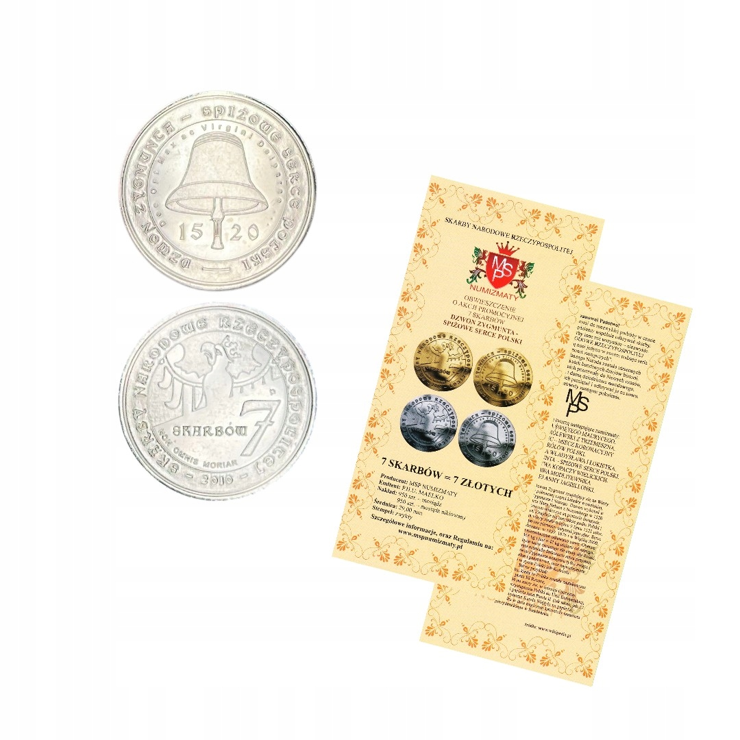Dukat lokalny o nominale 7 SKARBÓW z serii „Skarby Narodowe Rzeczypospolitej” - „Dzwon Zygmunta - Spiżowe serce Polski”, wybity w 2010 roku.