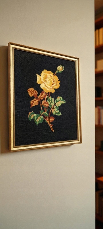 Wymiary: rama 39,5 x 32,5 cm, gobelin 36 x 29 cm