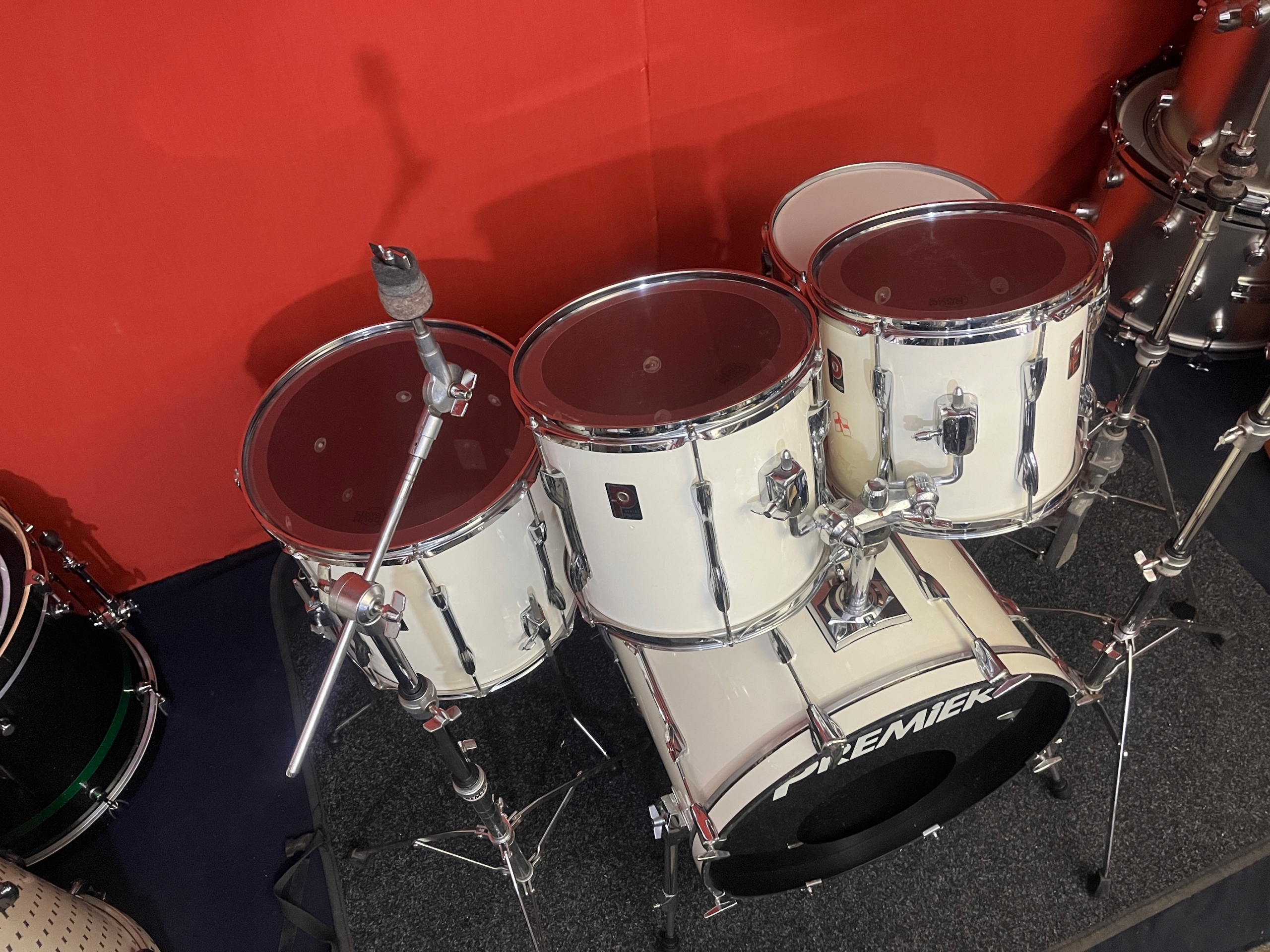 Rozmiary bębnów to 22", 12", 13", 16", 14" werbel stalowy. Zestaw jest w dobrym stanie i posiada ślady normalnego użytkowania. Zarówno bębny jak i hardware nie posiadają żadnych ukrytych wad. Bębny sprzedawane są z kompletnym solidnym i oryginalnym hardwarem Premier. Na tomach i werblu założone są nowe naciągi. Produkcja Angielska.