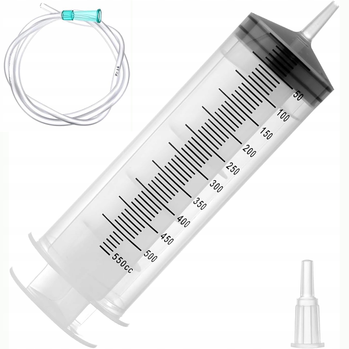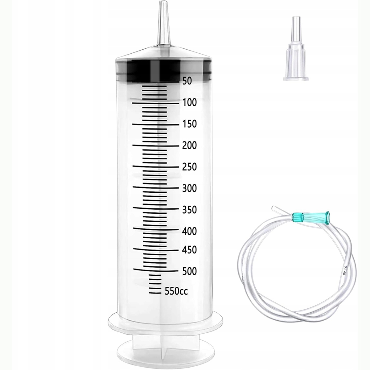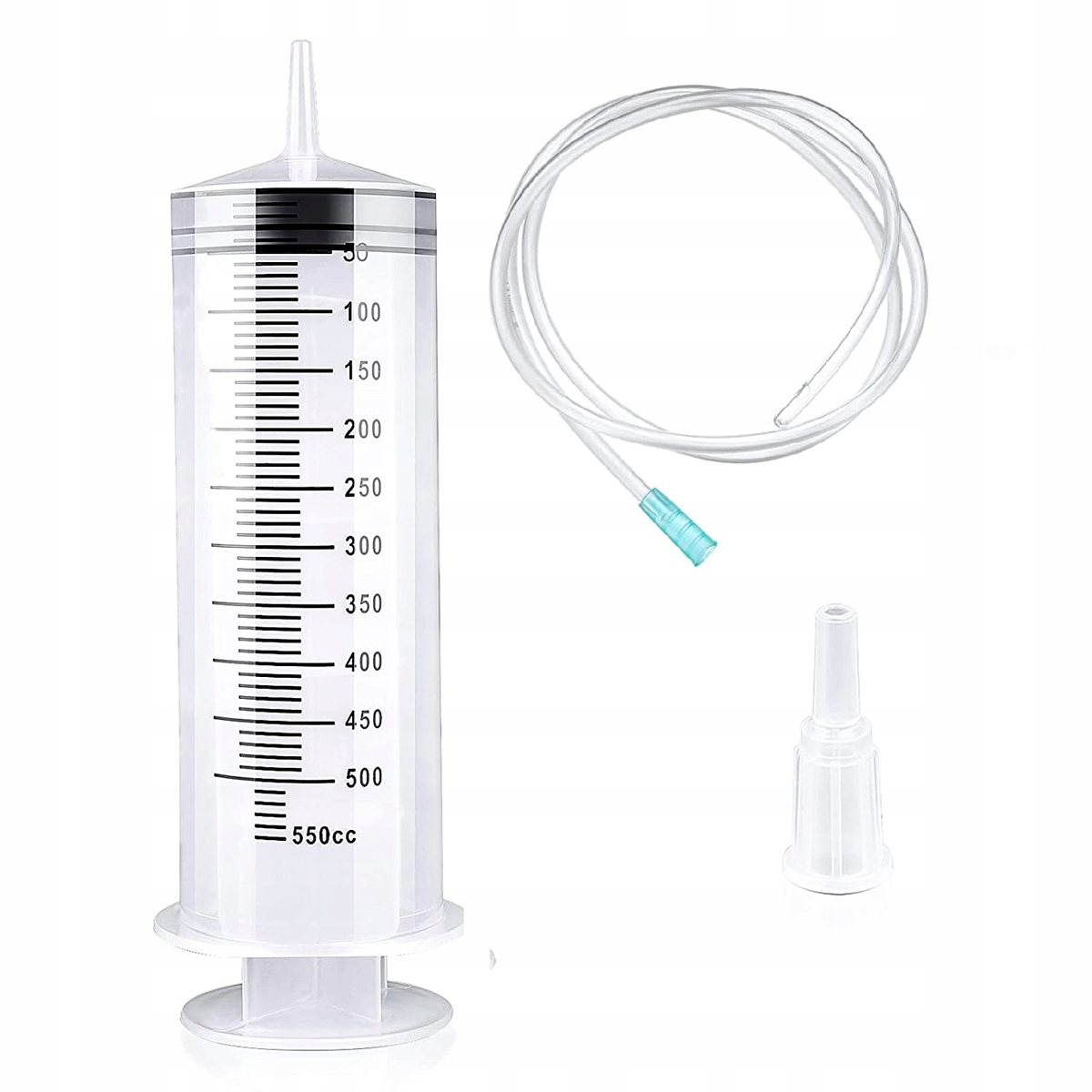 🔹Zestaw zawiera strzykawkę 500 ml, przezroczysty wąż o długości 1 m, nasadkę strzykawki oraz adapter igły. Adapter łączy strzykawkę z przezroczystym wężem, zapewniając bezpieczne i higieniczne połączenie podczas użytkowania. Strzykawki są indywidualnie zamykane dla bezpieczeństwa i higieny.
