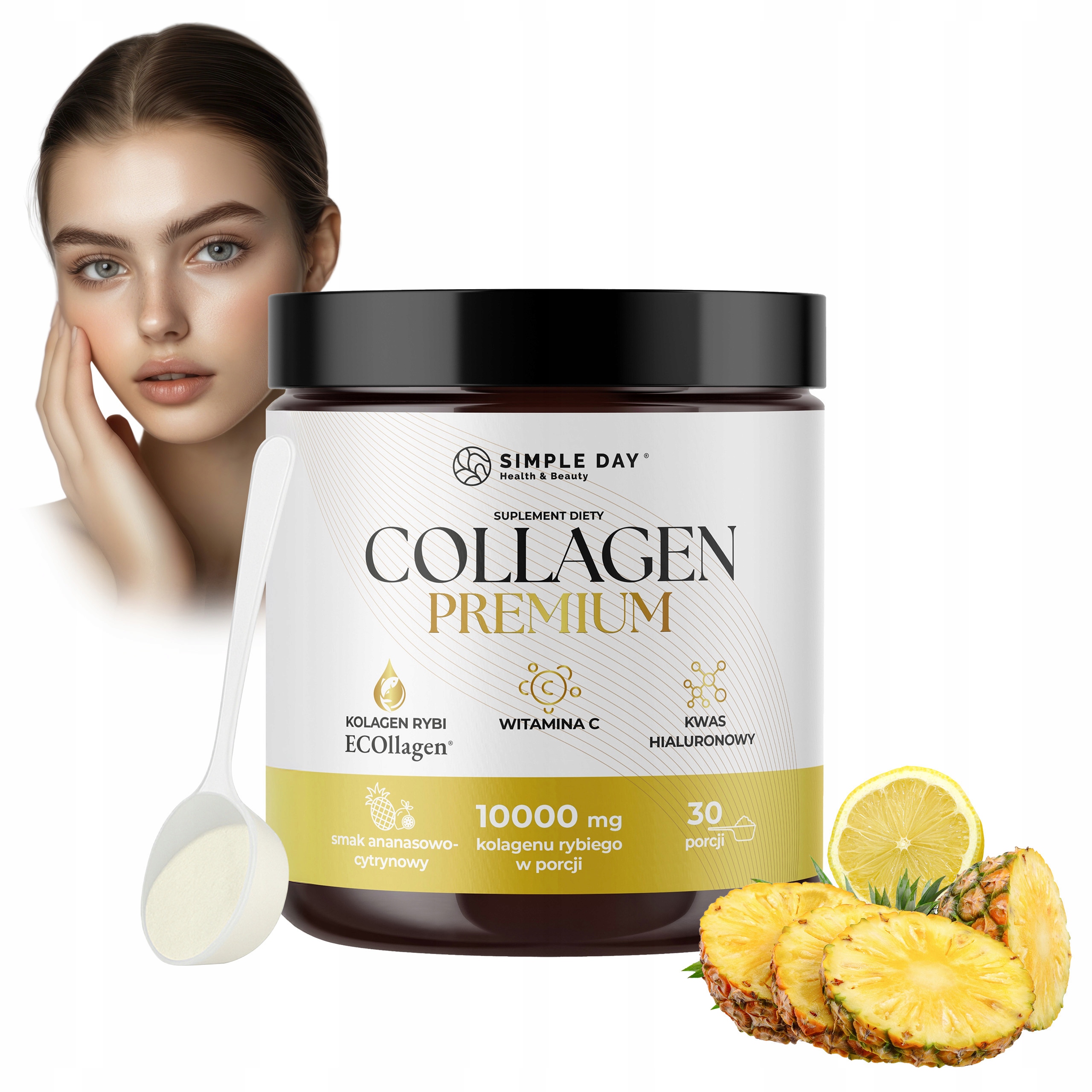 Zadbaj o skórę, tak jak dbasz o siebie - z lekkością i świadomością. COLLAGEN PREMIUM to suplement diety dla dorosłych, który łączy kolagen rybi ECOllagen®, kwas hialuronowy i witaminę C w formie łatwo rozpuszczalnego proszku o orzeźwiającym, ananasowo-cytrynowym smaku. To codzienny krok w stronę naturalnego blasku, jędrności i dobrej kondycji skóry.
