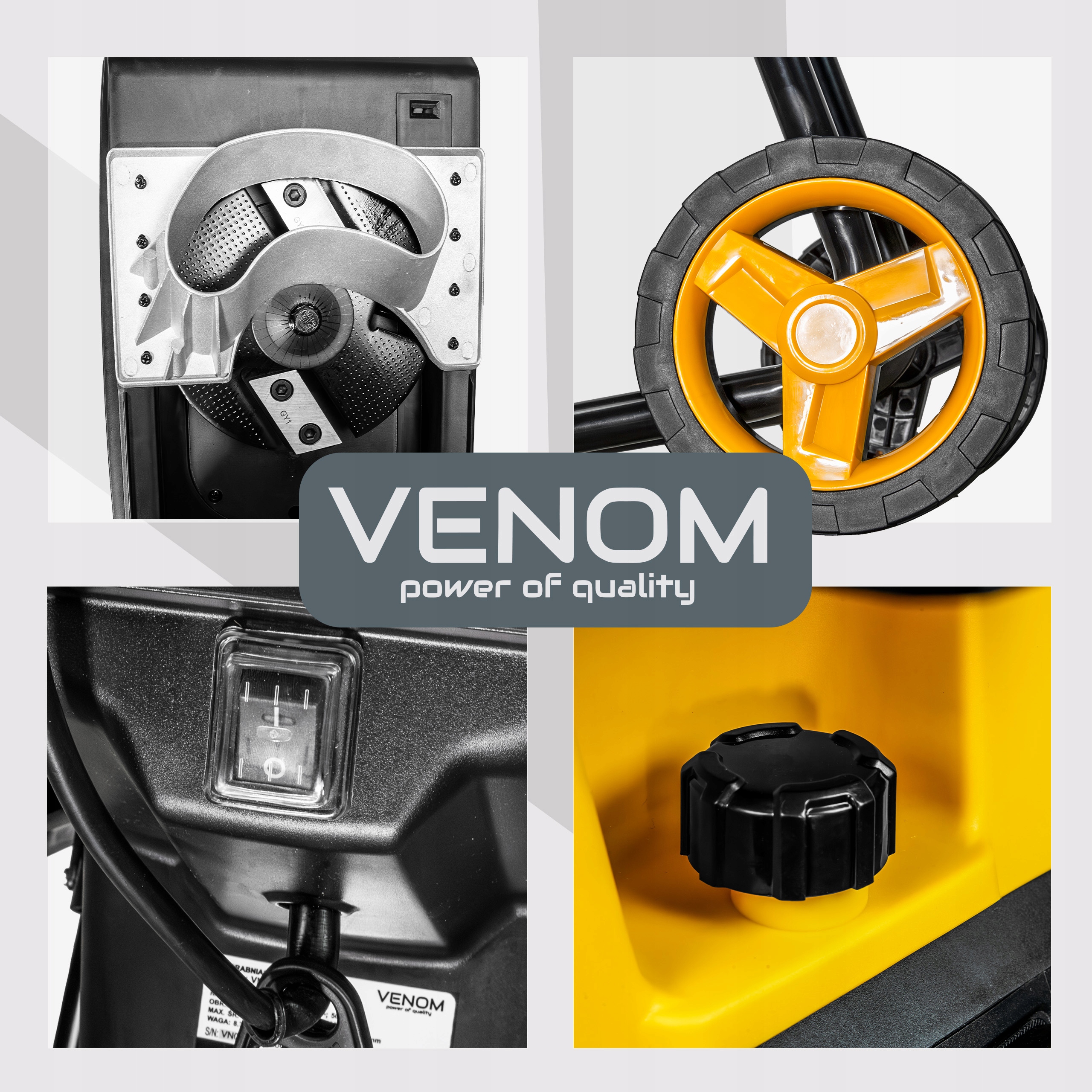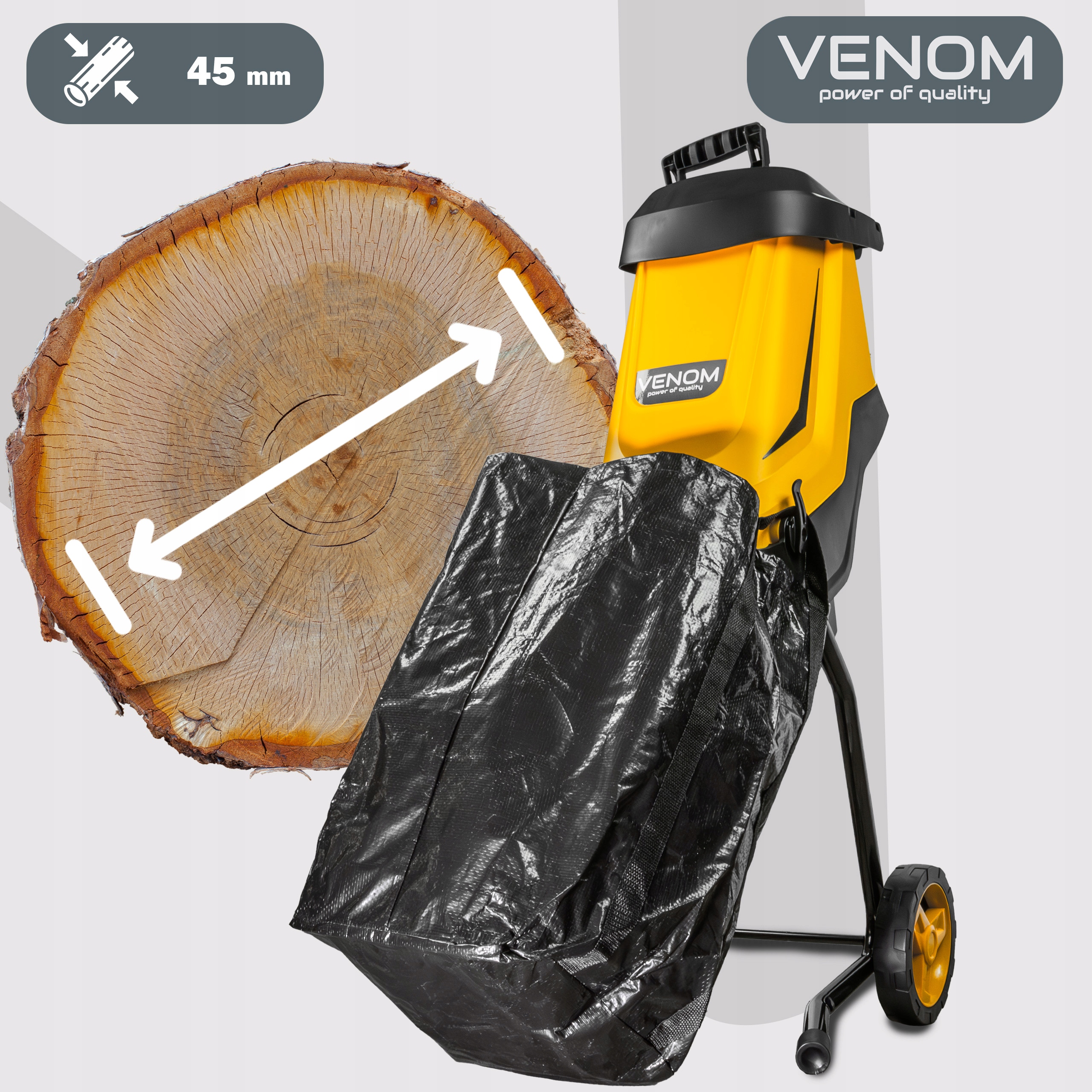 Decydując się na rozdrabniacz VENOM, otrzymujesz kompletny, profesjonalny zestaw, który pozwala na natychmiastową i komfortową pracę – bez ukrytych kosztów i bez konieczności dokupywania akcesoriów!