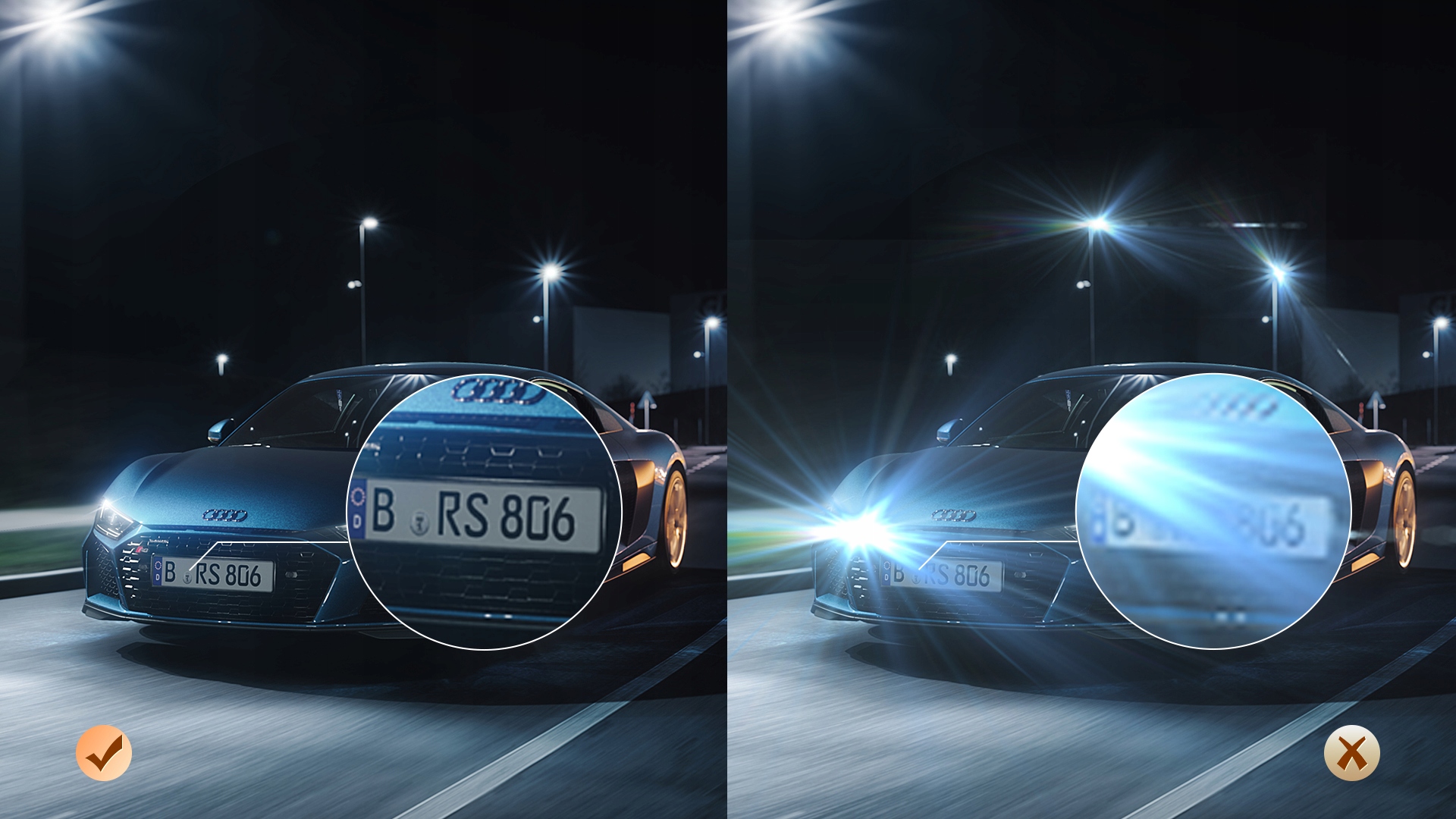 Koniec z odblaskami — dostosuj ekspozycję w czasie rzeczywistym za pomocą podglądu na żywo w aplikacji, zachowując wyraźny obraz tablic rejestracyjnych i znaków drogowych, gdy ma to największe znaczenie.