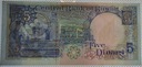 Nominał Five Dinars oraz numery „5” w narożnikach.