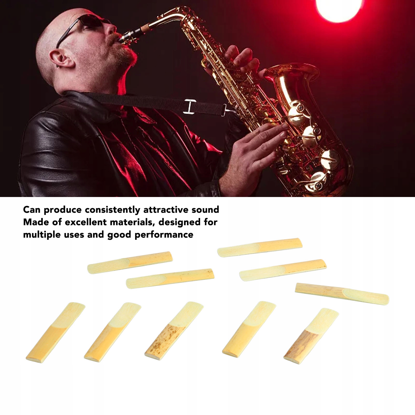 4. Spójny dźwięk: Stroik do saksofonu zosta zaprojektowany tak, aby generować spójne, urzekające brzmienie, na którym muzycy mogą polegać podczas występów za każdym razem, gdy go używają.