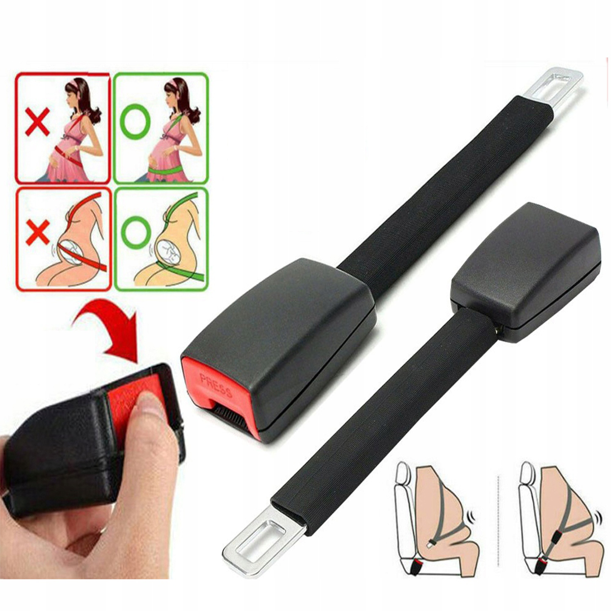 ✅Rozwiązuje problem zbyt krótkich pasów bezpieczeństwa w samochodzie u kobiet w ciąży i osób z nadwagą.