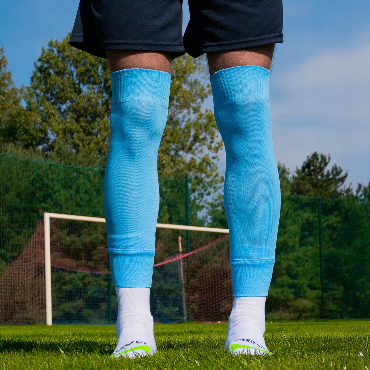Rękawy piłkarskie PROSKARY w klasyczny białym kolorze. Skarpety piłkarskie zostały o składzie 85% polipropylen, 10% poliester i 5% elastanu gwarantuje wytrzymałość, elastyczność, oddychalność i skuteczne odprowadzanie wilgoci, co sprawia, że jest idealne dla odzieży sportowej zapewniającej komfort i funkcjonalność. Dodatkowo, zastosowanie siateczkowych paneli w tubach piłkarskich jeszcze bardziej ułatwia zachowanie świeżości. Elastyczne getry bez stopki, starannie zaprojektowane wraz z ściągaczem na dole, gwarantują pewne umocowanie nagolenników, co przekłada się na swobodę ruchu podczas aktywności sportowej. Wytrzymałe tuby piłkarskie to niezbędny element każdego kompletnego stroju piłkarza.