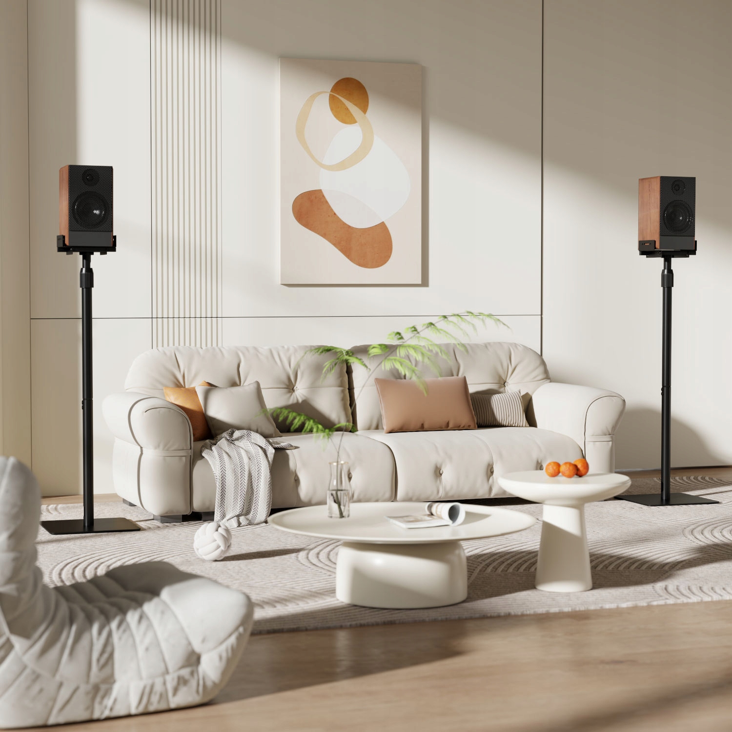 Mozos MSS6-SET-PRO to profesjonalny stojak podłogowy na głośniki, zaprojektowany z myślą o uzyskaniu najlepszej jakości dźwięku oraz zachowaniu elegancji w każdym wnętrzu. Regulowana wysokość 848–1118 mm pozwala ustawić kolumny na idealnym poziomie odsłuchu, co znacząco poprawia wrażenia podczas słuchania muzyki, oglądania filmów czy grania w gry. Dzięki temu stojak do głośników Mozos jest doskonałym wyborem zarówno do kina domowego, jak i studia czy biura. Konstrukcja wykonana z wytrzymałej stali i tworzywa sztucznego zapewnia wyjątkową stabilność i długą żywotność. Powłoka proszkowa w kolorze czarnym nadaje elegancki wygląd i chroni powierzchnię przed zarysowaniami. Udźwig do 5 kg sprawia, że stojak pasuje do większości dostępnych modeli głośników, w tym kolumn hi-fi i głośników multimedialnych. Uwaga: W zestawie znajduje się stojak Mozos MSS6-SET w wersji PRO. Inne elementy mają ukazać jedynie przykładowe zastosowanie.