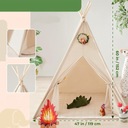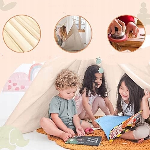 Trwały i łatwy w czyszczeniu materiał: namiot tipi wykonany jest z wysokiej jakości i wytrzymałego materiału (60% poliester, 40% bawełna). Można go prać w pralce i nie kurczy się łatwo. Płótno jest grube i solidne, dzięki czemu namiot posłuży przez długi czas. Ulepszone, solidne słupki z drewna sosnowego zwiększają stabilność i trwałość namiotu, dzięki czemu dzieci mogą się w nim bawić godzinami bez obaw o jego rozpad.