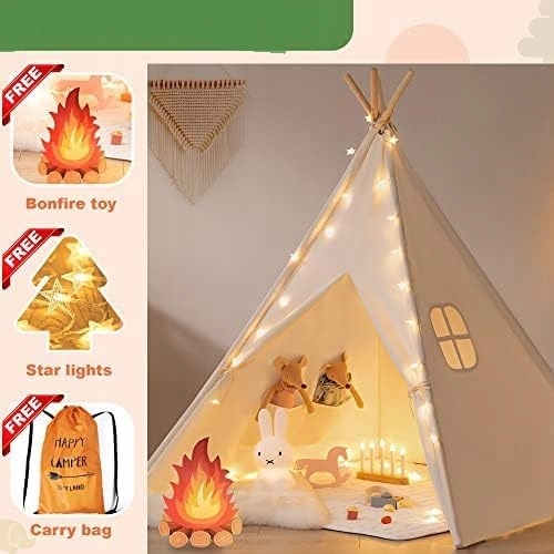 Cudowne i urocze dodatki: ten namiot tipi ma okno i dwie wewnętrzne kieszenie. W zestawie znajduje się 13 stóp długości lampki w kształcie gwiazd oraz tekturowa zabawka ognisko, co czyni go świetnym wyborem dla dzieci. Wszystko, co potrzebne do montażu, jest w zestawie, w tym 16 drewnianych słupków sosnowych z 12 łącznikami oraz praktyczna torba do przenoszenia. To idealny prezent dla dzieci, które lubią się bawić i rozwijać wyobraźnię.