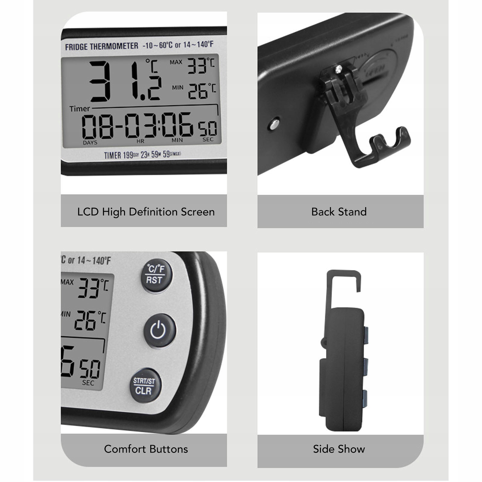 4. Wielofunkcyjny: ten termometr do lodówki i zamrażarki jest wielofunkcyjny, a jego maksymalna i minimalna temperatura zapewnia krytyczne odczyty temperatury w zastosowaniach związanych z bezpieczeństwem żywności, dzięki cz jest NaBardzo praktyczny i wygodny.