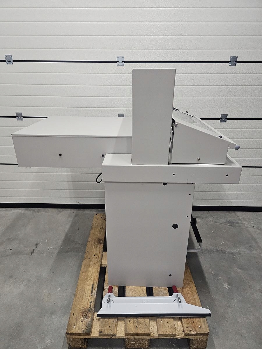 Sprzedaję gilotynę EBA 550 LT w stanie idealnym – profesjonalną maszynę hydrauliczną, która radzi sobie z wszelkimi typami papieru, nawet tymi najbardziej trudnymi. Pochodzi z wyprzedaży niemieckiego urzędu. Krajarka jest w stanie idealnym, regularnie serwisowana przez serwis EBA. Jeżeli szukasz urządzenia na długie lata znajdującego się w naprawdę dobrym stanie, to ta oferta jest dla Ciebie.