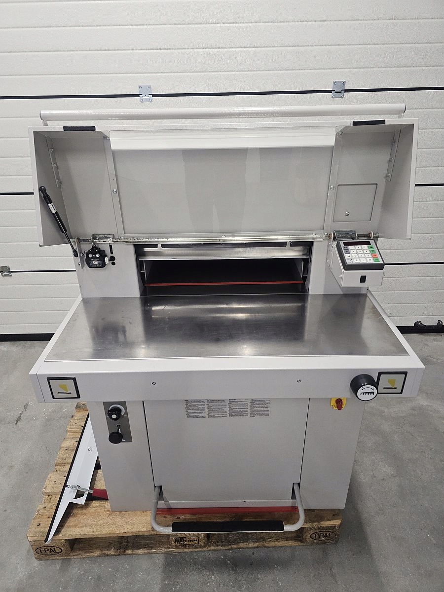 System komputerowy umożliwia programowanie różnych wymiarów cięcia. Maszyna sama przesuwa belkę pozycjonatora (siodła), i ustawia się na kolejny zaprogramowany wymiar. Operator po prostu uruchamia program, a urządzenie wykonuje wszystkie czynności automatycznie. Idealnie nadaje się do powtarzalnych prac w drukarniach i zakładach poligraficznych.